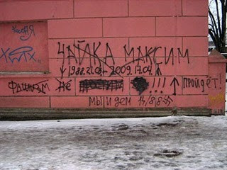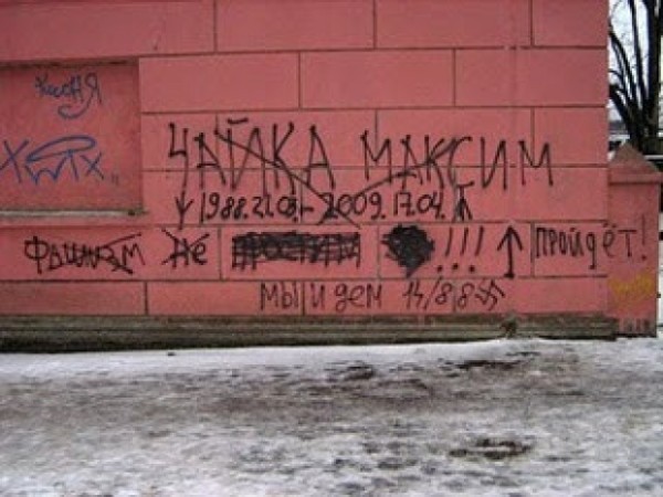 А нашу страну спасёт только национализм, а не фашизм. Демократия уже показала свою несостоятельность. И это идеология отнють не малолеток и безмозглых подростков. Народ чувствует, что он вымирает и его уничтожают, а молодёж, как самая активная часть общества, через интернет имеющая доступ ко всей информации, выражает свою позицию! Я, конечно, против межславянского сепаратизма, что весь свой президентский срок делал наш президент, мы (русские, украинцы, беларусы) единый народ, искуственно разделённый сильными мира сего (разделяй и властвуй). И не в восторге от граффити на домах, но наш народ по другому не разбудишь!