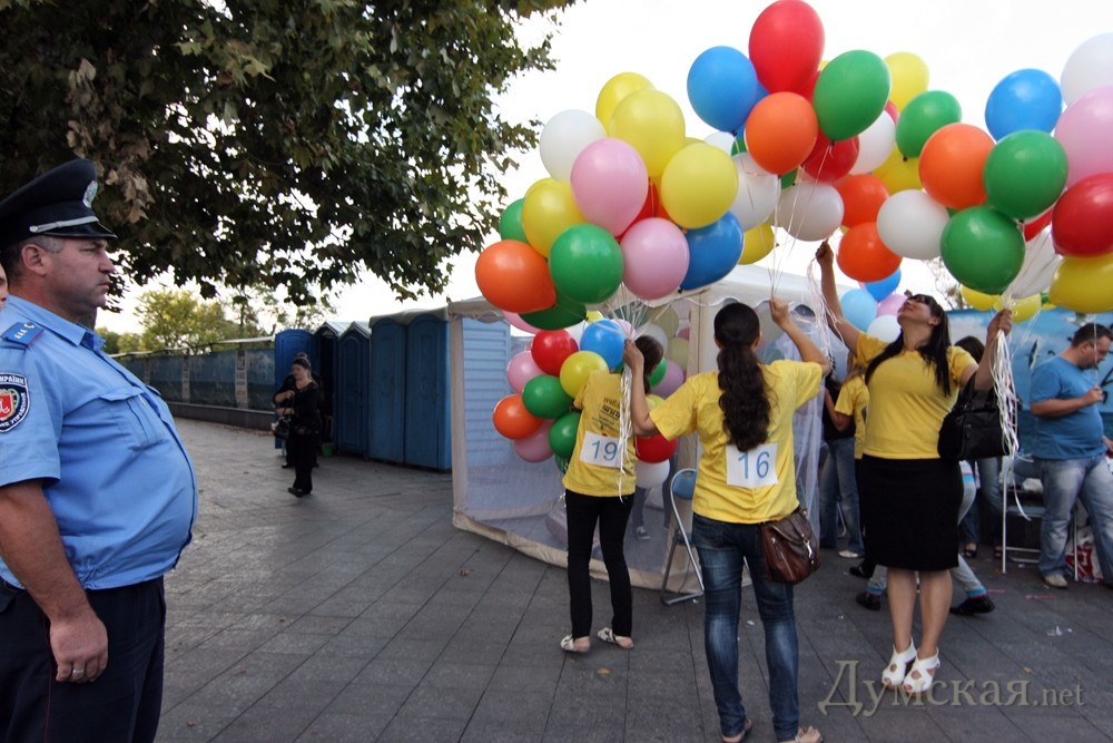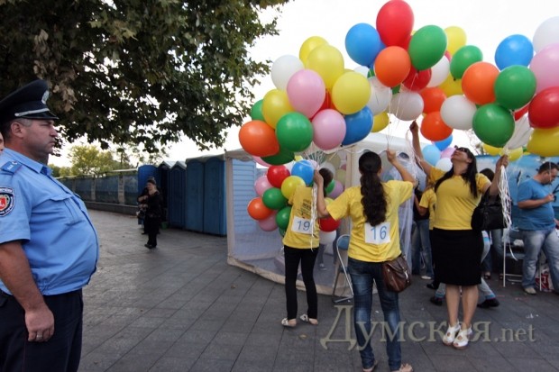В центре Одессы прошла благотворительная акция «Раскрась небо яркими красками». Ее цель — сбор денег для приобретения дорогостоящих лекарств и оборудования в отделение онкогематологии ОДКБ и на станцию переливания крови (нужны две холодильные камеры стоимостью 16500 грн каждая).
