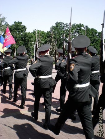Сегодня состоялась церемония возложения венков и цветов к памятнику Неизвестному матросу на Аллее Славы в парке им. Т.Г. Шевченко.