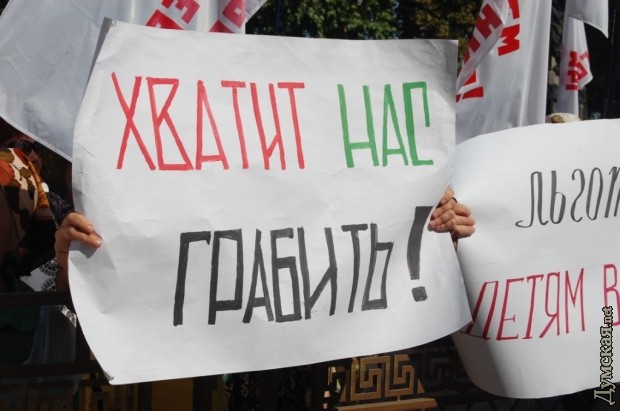 До недавнего времени права половины одесситов, которые попадают под категорию детей войны, нарушались. Речь идет о непредоставлении 25-процентной льготы на оплату вывоза мусора, что имело место в четырех из восьми ЖКС города – на поселке Котовского, Пересыпи, Слободке, в части жилмассива Таирова и в центре. То есть, в нашем городе власти фактически разделили «детей войны» на два сорта — тех, кому посчастливилось получать эту льготу, и тех, кому она не досталась. После многочисленных обращений одесситов, которые не получали эту льготу, на происходящий беспредел обратил внимание депутат городского совета Алексей Гончаренко. Он обратился в Министерство по вопросам ЖКХ, и получил официальный ответ за подписью первого замминистра Лотоцкого, который подтвердил неправомочность действий городской власти. Депутат обратился в комиссию по соцполитике Одесского горсовета. И там также пришли к однозначному выводу о необходимости предоставления льгот. Однако, как раз в это время мэрия пошла и вовсе на непредсказуемый шаг, и отобрала льготу на вывоз мусора у тех «счастливчиков», которым она предоставлялась. Более того, цинизм достиг апогея, когда их обязали вернуть ранее «недоплаченные» деньги. В связи с этим 18 августа более двухсот одесситов пикетировали заседание горисполкома. СМЕРТЬ РОСІЙСЬКИМ ОКУПАНТАМ! Помітили помилку? Виділяйте слова з помилкою та натискайте control-enter