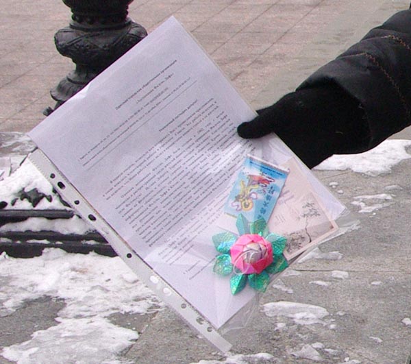 Сегодня в 10 утра в Большом сессионном зале Одесской мэрии началось очередное заседание сессии Одесского городского совета. В зале зарегистрировано 110 человек. Перед началом заседания у входа в горисполком депутатов встречали приверженцы китайского религиозного движения «Фалуньгун», которое в Китае жестко преследуется правящей Коммунистичееской партией. Они вручали депутатам свою листовку, в котором призвали слуг народа распространять в Одессе принципы Фалуньгун — «Истину, Доброту и Терпение, которые оказывают благотворное влияние на духовное и физическое здоровье человека и общества». Кроме листовки, депутатам вручали бумажный цветок лотоса. Напомним, что в мае прошлого года китайское консульство в Одессе потребовало от одесских чиновников запретить концерт труппы «Shen Yun», исповедующей «Фалуньгун». СМЕРТЬ РОСІЙСЬКИМ ОКУПАНТАМ! Помітили помилку? Виділяйте слова з помилкою та натискайте control-enter |