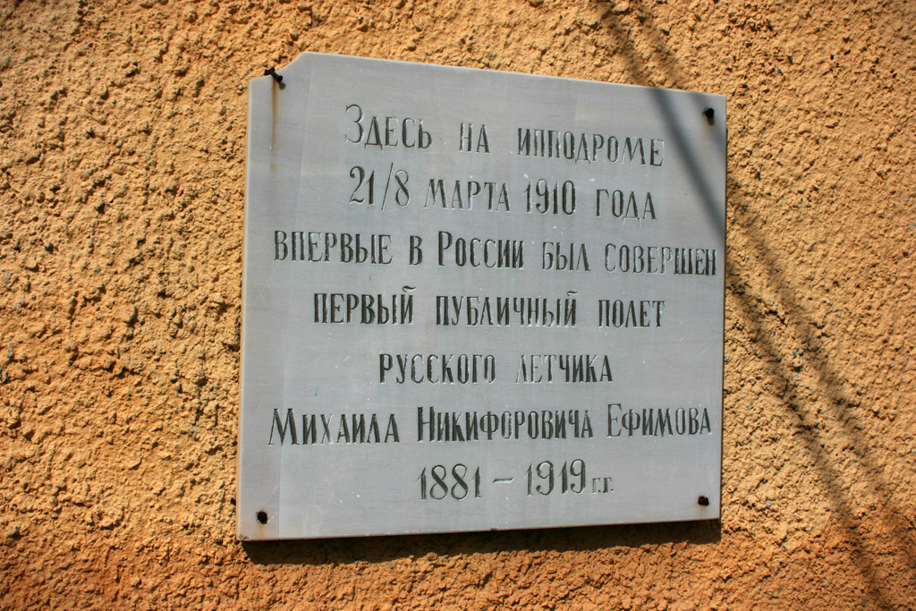 В 1910 году впервые в России именно здесь был совершён публичный полёт на аэроплане летчиком Михаилом Ефимовым, а годом раньше — 13 октября 1909 года — Куприн вместе с Уточкиным поднялись с поля на воздушном шаре.