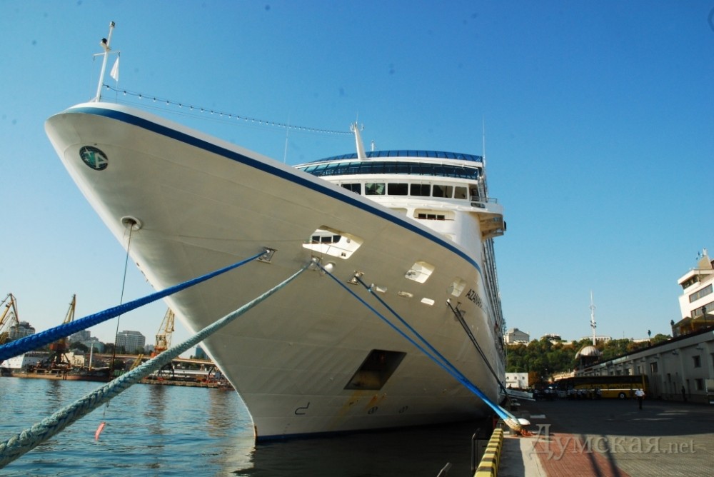В последний день лета в Одессу зашел белоснежный круизный лайнер «Aamara quest» (длина 180,6 м, флаг Багамы ). На борту судна – 660 пассажиров, главным образом, люди преклонного возраста. После стоянки в Южной Пальмире теплоход направится к берегам Крыма. По информации агента судна, на борту лайнера путешествует представитель генерального офиса круизной корпорации «Royal caribbean», целью которого является детальное изучение береговой инфраструктуры и достопримечательностей круизных портов Черного моря.