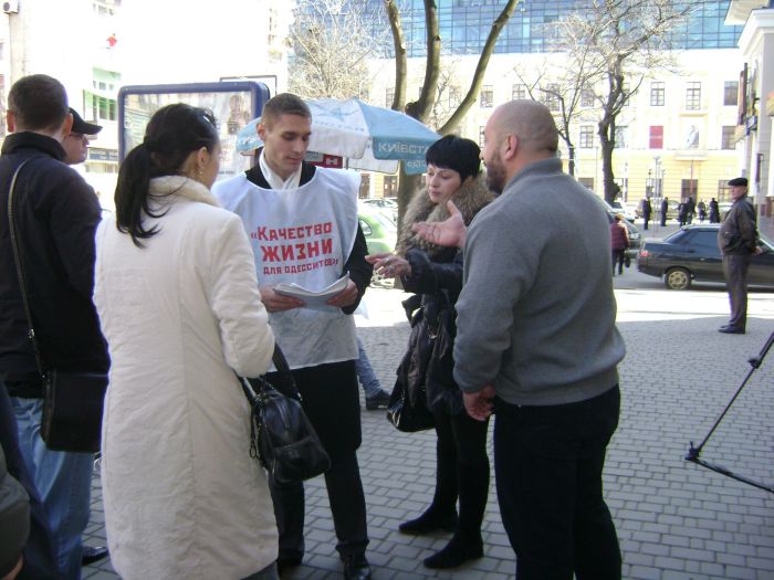 Парковщики не довольны тем, что одесситов информируют о том, сколько реально стоит услуга парковки«Пусть ежики охраняют вашу машину» — такие слова сегодня услышал корреспондент Думской.net от парковщика, который работает напротив Русского театра, в ответ на вопрос, что он будет делать, если автомобилист заплатит ему за парковку 1 гривню в час, то есть ровно столько, сколько установлено решением исполкома горсовета. Для того, чтобы повлиять на беспредел, царящий на парковках Одессы, общественная организация «Качество жизни для одесситов» начала проведение акции по разъяснению владельцам автомобилей, сколько следует платить за парковку. Ведь ни для кого не секрет, что в Одессе действуют совсем другие расценки, установленные либо самими парковщиками, либо теми, кто их покрывает и собирает наличность. Например, в центре города берут не меньше трех гривень, возле рынков – от 5-ти, в вечернее время возле театров цены на парковку возросли уже до 15-ти гривень. Для того, чтобы автомобилисты узнали, сколько они должны платить, активисты организации раздают газету с решением исполкома, установившее расценки на парковку – 1 гривня в час. Как рассказал журналистам руководитель организации «Качество жизни», депутат горсовета Алексей Гончаренко, «Главный смысл этой акции – организовать общественный контроль за тем, что происходит на одесских парковках. Так как городская власть не осуществляет этот контроль, а наоборот, попустительствует тем бесчинствам, которые здесь происходят. Речь идет о том, что у людей вымогают гораздо больше денег, чем стоит парковка. Городская власть не реагирует, а наоборот, покрывает этот бизнес, правоохранительные органы, в которые мы неоднократно обращались, к сожалению, так же не наводят порядок, поэтому я вижу на сегодняшний день только один путь для наведения порядка – это общественный контроль. Сегодня наши активисты проводят такой контроль на ряде самых крупных парковок, мы планируем это делать так часто, как сможем. Вчера на Малиновском рынке, возле театра музкомедии у людей была очень положительная реакция, люди благодарны, потому что парковщики многие пьяные, вымогают деньги, люди, особенно женщины, их просто боятся. И когда люди видят, что стоят наши активисты, которые не дают брать денег больше, чем устанвлено, которые контролируют работу парковщиков, водители нам благодарны». На место проведения акции к Русскому театру пришли и представители промэрской организации «Свободная Одесса». Какую цель они преследовали, начав спор с Алексеем Гончаренко, непонятно. Видимо, они поддерживают незаконные поборы, раз решили поскандалить на такой, казалось бы, мирной и нужной людям акции. Еще более странным стало прозвучавшее из уст одного из активистов организации предложение поменяться членам организации «Качество жизни» местами с парковщиками, надеть их жилеты и поработать. Может быть, они уже сами принимают людей на работу в «Парксервис», а, может, подталкивали членов организации «Качество жизни» нарушить трудовой кодекс и заняться работой без соответствующих документов. А, может, просто плохо соображали, что говорят. Что касается парковщика, то ему сегодня не повезло: незаконной прибыли он не получит. Поговорить с ним не удалось, так как кроме нецензурной брани он ничего не произносил. СМЕРТЬ РОСІЙСЬКИ