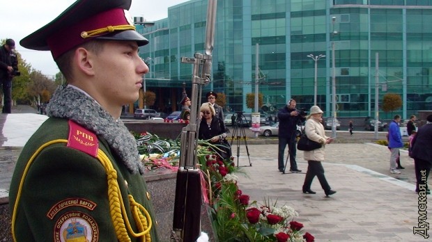 Сегодня же в Одессе состоялось торжественное возложение цветов к стелле на площади 10 апреля и небольшой парад.