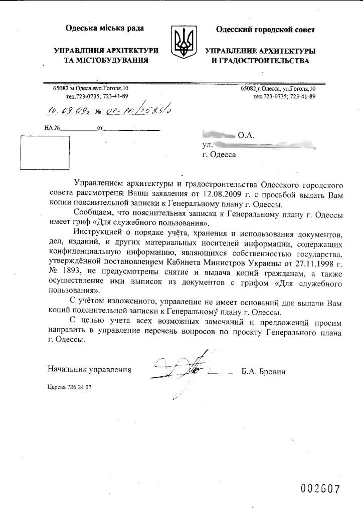 Представители ряда экологических организаций выяснили, что пояснительная записка к проекту нового Генерального плана развития Одессы засекречена — сообщает УНИАН. По словам активиста «Экологической команды Одессы» Оксаны Штокало, представителям ряда инициативных групп граждан, запросившим в муниципальном управлении архитектуры и градостроительства разрешения на ознакомление с пояснительной запиской к проекту нового Генплана, сообщили, что «пояснительная записка к Генеральному плану города Одессы имеет гриф «Для служебного пользования». «В ответном письме за подписью начальника управления Бориса Бровина указывается, что инструкцией не предусмотрены снятие и выдача копий гражданам, а также осуществление ими выписок из документов с грифом «Для служебного пользования», — отметила Оксана Штокало. По ее словам, целью ограничения доступа является сокрытие информации, свидетельствующей о том, что новый Генплан значительно ухудшит экологическую обстановку в городе. В связи с этим Оксана Штокало заявила, что не собирается мириться с таким положением вещей и в ближайшее время через суд будет добиваться «предания огласке текстовой части Генплана и привлечения к ответственности должностных лиц управления, виновных в укрывательстве общественно важной информации». Как отметила активист «Экологической команды Одессы», подобные действия со стороны муниципалитета являются прямым нарушением требований Орхуской конвенции, предусматривающей гарантии государств а относительно свободн го доступ а граждан к информации об окружающей среде, и могут повлечь международные санкции против Украины. «Нет сомнений, что обсуждение нового Генплана, которое является обязательным, вряд ли можно считать состоявшимся», — считает общественник, напоминая, что этот документ, который, как оказалось, не подлежит разглашению, уже почти 2 года активно обсуждается в том числе на общественных слушаниях. СПРАВКА: Орхусская конвенция — конвенция Европейской Экономической Комиссии ООН «О доступе к информации, участию общественности в принятии решений и доступе к правосудию по вопросам, касающимся окружающей среды». Конвенция была подписана 38 странами в датском Орхусе 25 июня 1998 года на IV Конференции министров окружающей среды европейских стран в рамках Процесса «Окружающая среда для Европы». Целью Конвенции является поддержка защиты прав человека на благоприятную окружающую среду для его здоровья и благосостояния, на доступ к информации, на участия общественности в процессе принятия решений и на доступ к правосудию по вопросам, касающимся окружающей среды. На каждую сторону налагаются обязательства по принятию необходимых законодательных, регламентирующих мер для создания и поддержания чёткой, открытой и согласованной структуры для осуществления положений Конвенции. Документ предусматривает обязательное предоставление необходимой информации по запросу, не требующему обоснования и активное информирование общественности посредством Интернета, публикаций отчетов о состоянии окружающей среды. Кроме того, перед отказом в предоставлении информации необходимо учесть степень интереса к ней общественности. Причины отказа в предоставлении экологической информации может заключаться только в том, что данная информация повлияет на к