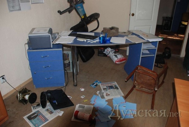 «Из помещения были похищены 4 компьютера и важные документы. В офисе был учинен погром», — говорится в сообщении Одесской областной организации партии.