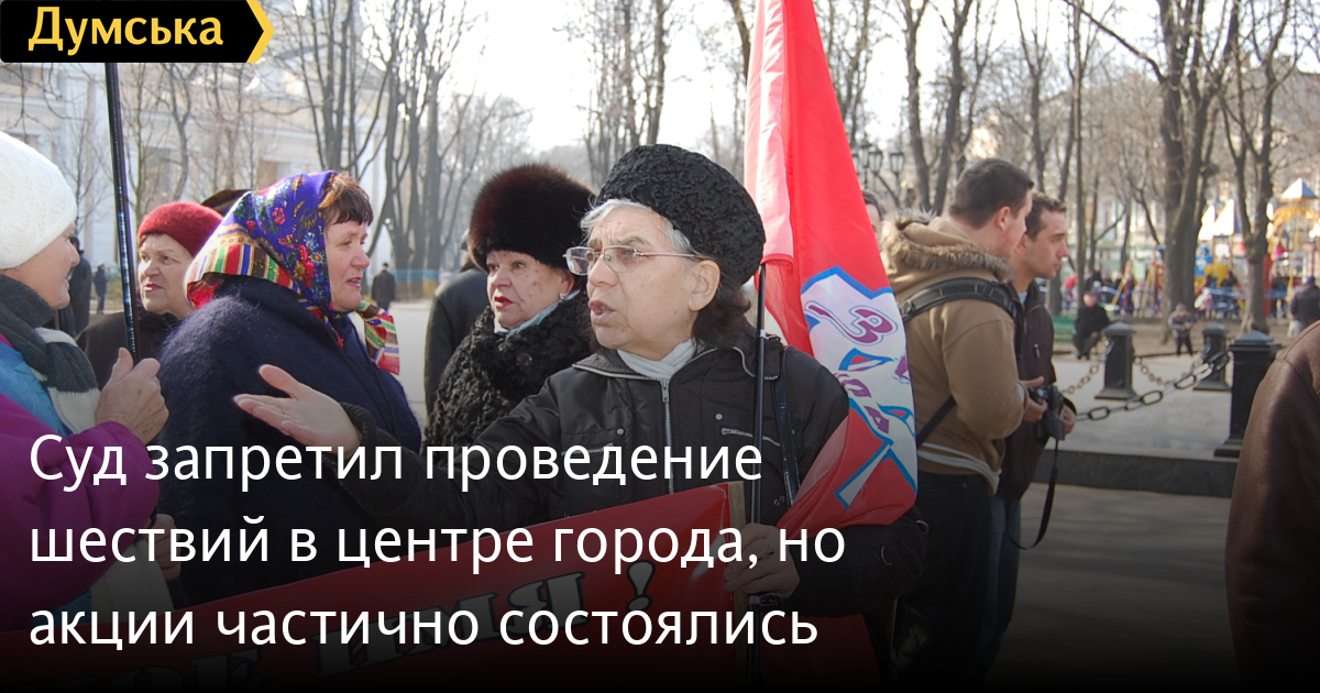 Суд запретил проведение шествий в центре города, но акции частично состоялисьОдесский горсовет оспорил в окружном административном суде намерение ряда политических сил и общественных организаций провести сегодня свои акции-шествия. Об этом стало известно только сегодня, когда на Соборную площадь пришел судебный исполнитель и огласил вердикт, который вынес судья Корой. Ранее журналистам поступали сообщения о планах провести шествия православными казаками, украинскими националистами, и даже представителями сексменьшинств. Так же подавали заявку на проведение шествия члены организации «Око диаманта». Именно им частично удалось прорвать оборону милиции и пройти по Дерибасовской. Как сообщает корреспондент Думской.net, сотрудники милиции окружили Соборную площадь, чтобы не дать возможность участникам акций начать шествие. Тем не менее, известная в Одессе участница всевозможных акций Нина Качановская стала по одному выводить членов «Ока диаманта» за милицейские кордоны, таким образом ей удалось провести около 30 человек. Они и пошли по Дерибасовской, выражая протест против разжигания национальной розни и выступая за русский язык. Как сообщили сотрудники милиции, националисты из «Свободы» все же провели свое сборище, но не в историческом центре Одессы, а возле памятника Тарасу Шевченко. СМЕРТЬ РОССИЙСКИМ ОККУПАНТАМ! Заметили ошибку? Выделяйте слова с ошибкой и нажимайте control-enter |