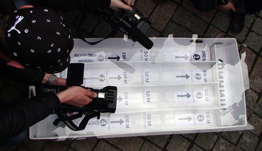 Весь забег занял не больше нескольких секунд. Таракан, бежавший по дорожке с надписью Костусяка, был единственным, кто сразу двинулся к финишу. Вторым через некоторое время пришёл «Кваснюкевич».