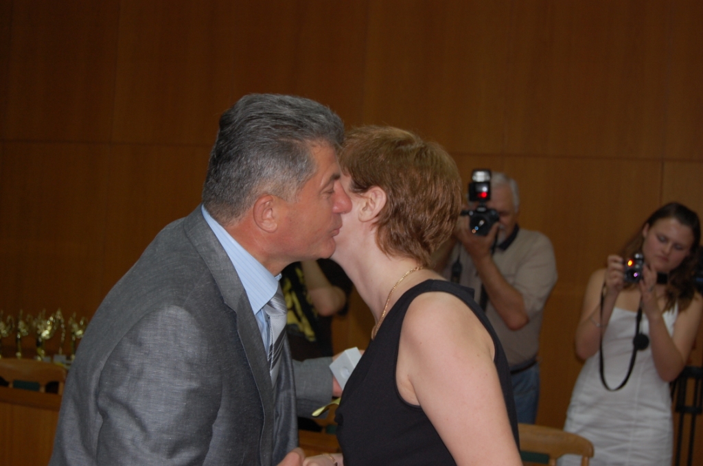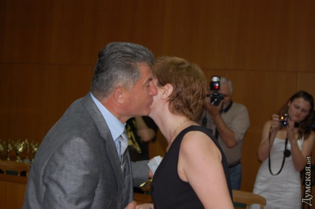 Сегодня в Одессе прошел финал областного конкурса «Женщина года – 2008». Подобные мероприятия в нашем регионе проводятся с 2004 года, и основными их целями является изменение установившихся стереотипов о роли и месте женщин в обществе, а также выявление и оглашение имен женщин, которые своим трудом весомо повлияли на развитие Одесского региона. Кандидатуры для участия в 15-ти номинациях конкурса выдвигаются органами государственной власти, предприятиями всех форм собственности, общественными и политическими объединениями. Первый этап конкурса проводился с 1 по 20 февраля на уровне городов и районов области, где выявлялись победительницы на местах и отбирались кандидатуры для участия в областном этапе конкурса (всего 143 представительницы прекрасного пола). Среди победительниц конкурса значатся такие известные имена, как Ирина Залюбовская (председатель комиссии по вопросам науки и образования Одесского облсовета), Людмила Прокопечко (председатель Коминтерновской РГА), Елена Китайская (начальник Главного управления труда и социальной политики облгосадминистрации), Светлана Бедрега (директор департамента финансов Одесского горсовета), Светлана Арабаджи (директор ЧП «Кати»(г.Одесса)), Мария Евголенко (пресс-секретарь губернатора) и другие. Всем лауреаткам и победительницам были вручены цветы, дипломы и статуэтки «Ника» (богиня победы). Во время общения с журналистами перед награждением победительниц Николай Сердюк поделился наблюдением, что одесские женщины – самые красивые и обаятельные в мире, причем, по словам губернатора, об этом он заявил не как должностное лицо, а как человек, много путешествовавший по миру. Вообще, настроение у губернатора сегодня было приподнятое. Во время церемонии награждения он прямо-таки сыпал шутками. Например, вручая награду Светлане Бедреге, он пообещал потом зайти к ней за деньгами, награждая Светлану Арабаджи, он порадовался, что наконец-то поцеловал жену своего зама, а, поздравляя Марию Евголенко, пообещал, что с таким шефом она и не таких высот достигнет. После окончания церемонии Николай Сердюк признался нашему корреспонденту, что еще никогда в один день не целовал столько женщин. СМЕРТЬ РОСІЙСЬКИМ ОКУПАНТАМ! Помітили помилку? Виділяйте слова з помилкою та натискайте control-enter