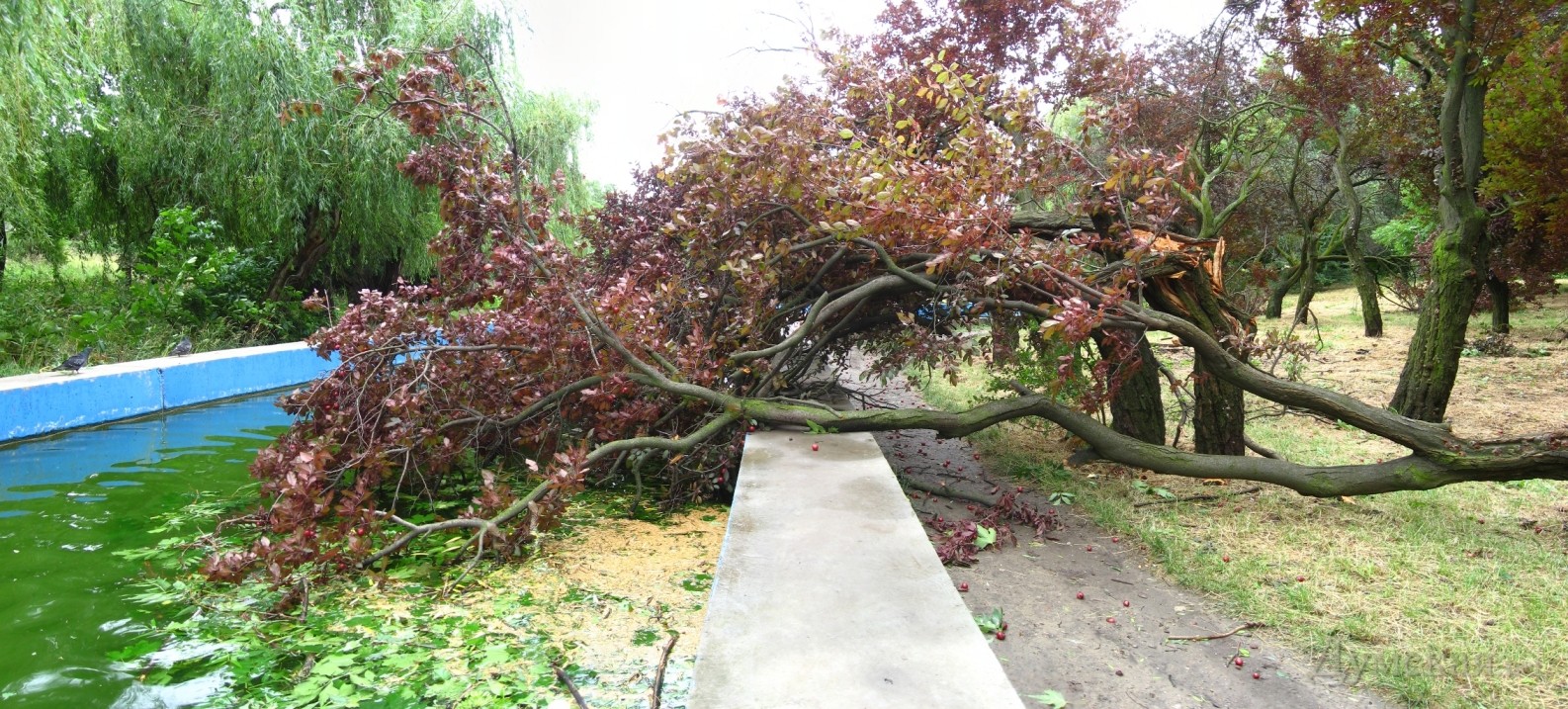 Стихия, охватившая Одессу 26-27 июня, побуйствовала и в одесском парке Победы. Напомним, что лишь по официальным данным департамента информации мэрии вследствие непогоды в Одессе упали более 500 деревьев.