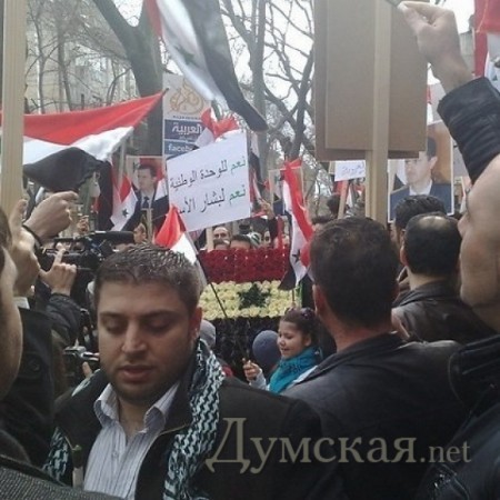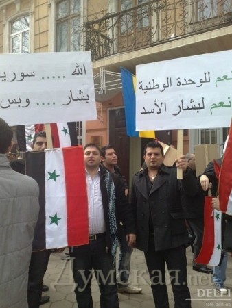 У стен консульства Сирии в Одессе состоялся митинг в поддержку сирийского президента Башара Аль-Асада. В акции приняли участие сотни сирийцев, проживающих в Одессе. Участники акции заявили, что к проведению митинга их побудили последние события, происходящие в их стране, сообщает Delfi. По мнению одесских сирийцев, некоторые арабские телеканалы осознанно искажают правду и трактуют события с «вражеской» точки зрения.