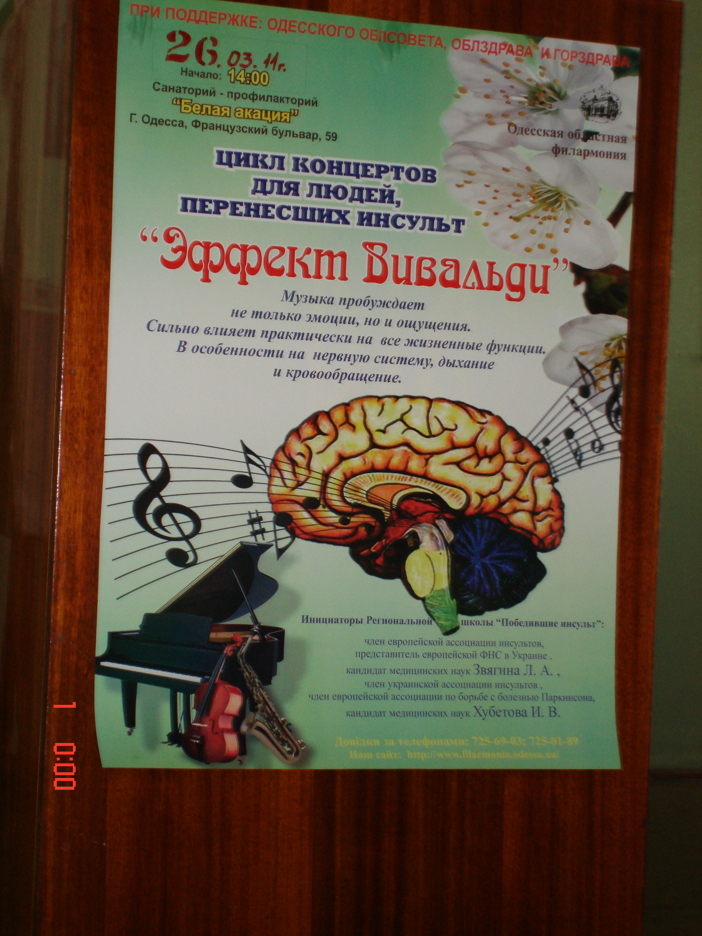 В Одесском областном медицинском центре («Больнице водников») состоялось открытие региональной школы «Победим инсульт». Необходимость открытия этого проекта связана с необходимостью осознания значимости своевременных профилактических, лечебных и реабилитационных мероприятий для пациентов с факторами риска и высокой вероятностью развития нарушений мозгового кровообращения, а также для перенесших инсульт. Планируется прочтение лекций по уходу за больными, об основных мерах профилактики появления инсульта, будут рассмотрены факторы риска и меры борьбы с ними, разрабатываются новые немедикаментозные реабилитационные направления. Открытие школы «Победим инсульт» вызвало широкий интерес у общественности. Были приглашены пациенты, их родственники, а также лечащие врачи. На первом заседании присутствовало более 50 человек. У пациентов была возможность по специально разработанным тестам проверить свою память и эмоциональное состояние. Результаты тестирования будут сообщены каждому пациенту и даны соответствующие рекомендации. Большое внимание было уделено новым немедикаментозным методам реабилитации. В частности, совместно с коллективом Одесской филармонии уже подготовлено такое направление, как музыкотерапия. Используя научно доказанные результаты исследований, свидетельствующих, что определенные музыкальные произведения положительно влияют на восстановительные процессы нервных клеток, разработана специальная музыкальная программа. Первый концерт состоится в 14 часов 26 марта в помещении санатория «Белая акация» на Французском бульваре, 59. Место проведения мероприятия выбрано неслучайно, и связано с удобством расположения зала для людей с ограниченными возможностями. Перед концертом пройдет лекция о том, как влияет музыка на состояние нервных клеток, какие музыкальные произведения необходимо слушать, с какой частотой и в какое время суток. После концерта, пациенты и их родственники смогут приобрести диски со специально разработанной музыкальной программой. Региональная школа «Победим инсульт» будет работать на постоянной основе. По вопросам проведения занятий можно обратиться по телефонам к организаторам: Звягиной Лилии Аркадьевне 0673834375, E-mail: liliyazv@rambler.ru Хубетовой Ирине Вильевне 0974167710, E-mail: hubrina@rambler.ru СМЕРТЬ РОСІЙСЬКИМ ОКУПАНТАМ! Помітили помилку? Виділяйте слова з помилкою та натискайте control-enter |