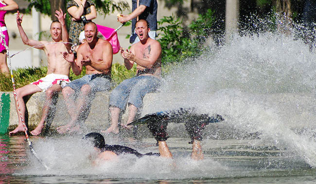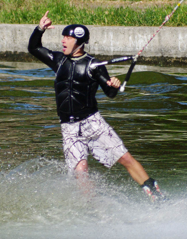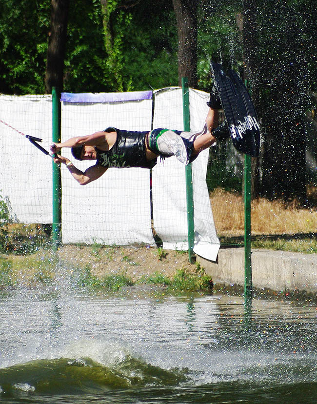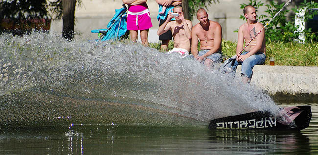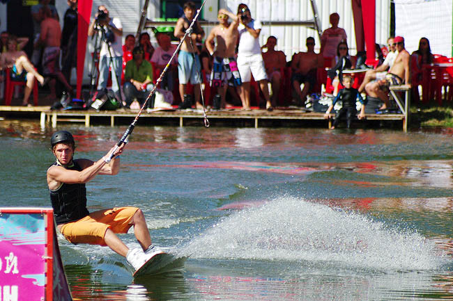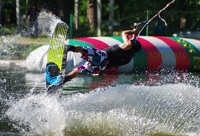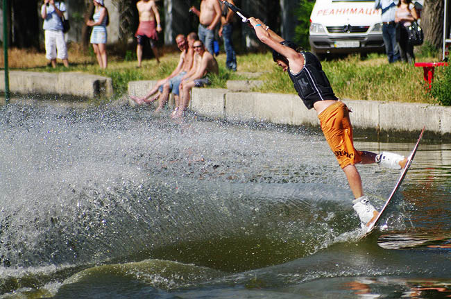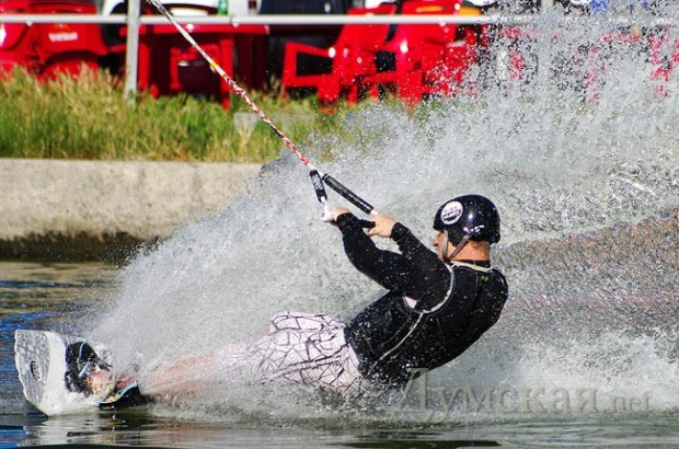 Сегодня в Одессе проходят соревнования по вейкбордингу – гонках по воде на досках. Вейкбординг (от англ. wakeboard: wake — кильватерная волна, board — доска) — один из наиболее активно развивающихся водных видов спорта и отдыха в мире. Вейкбординг можно сравнить с водными лыжами, с той лишь разницей, что вейкбордер не просто едет за катером, держась за фал, а ещё и выполняет различные трюки с помощью волны и трамплинов. Также существует такая разновидность вейкбординга, как кабельный вейкбординг с помощью механизированной канатно-буксировочной установки, заменяющей катер.