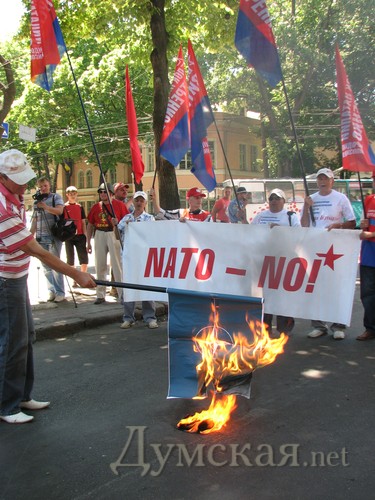 В заключение акции протеста активисты ПСПУ и «Киевской Руси» публично сожгли НАТОвский флаг.