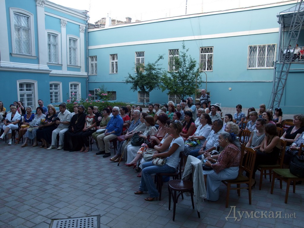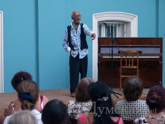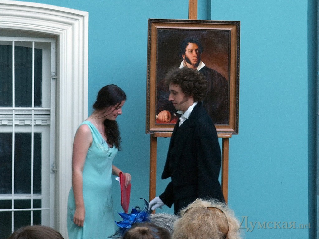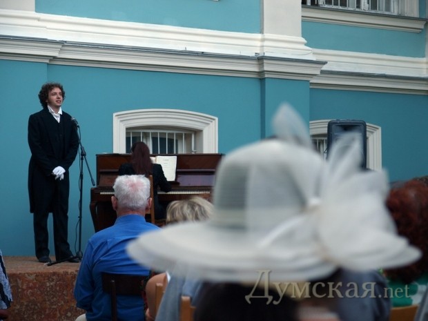 10 июня в отреставрированном дворике музея Западного и восточного искусства состоялся творческий вечер, посвященный Александру Сергеевичу Пушкину. Поэта можно было и услышать, и увидеть, и просто насладиться хорошим вечером в хорошей компании. Идея превращения дворика музея западного и восточного искусства в концертную площадку принадлежит знаменитому американцу одесского происхождения Хобарту Эрлу. Пару лет назад он предложил директору музея Владимиру Островскому устраивать во дворике выступления филармонического оркестра. С тех пор идея зародилась искрой и окончательно загорелась совсем недавно. — Еще неделю назад здесь были строительные леса, мусор, какие-то доски. – говорит Владимир Островский. Я уже почти потерял надежду сделать здесь что-нибудь. Говорю прорабу: «Постарайтесь привести тут все в порядок, мы будем устраивать Пушкинский вечер». А он мне: «А меня пригласите?». «Естественно, пригласим» — отвечаю. И буквально на следующий день двор был чистый. Позавчера еще местами не было окрашено, но теперь – все блестит свежей краской.