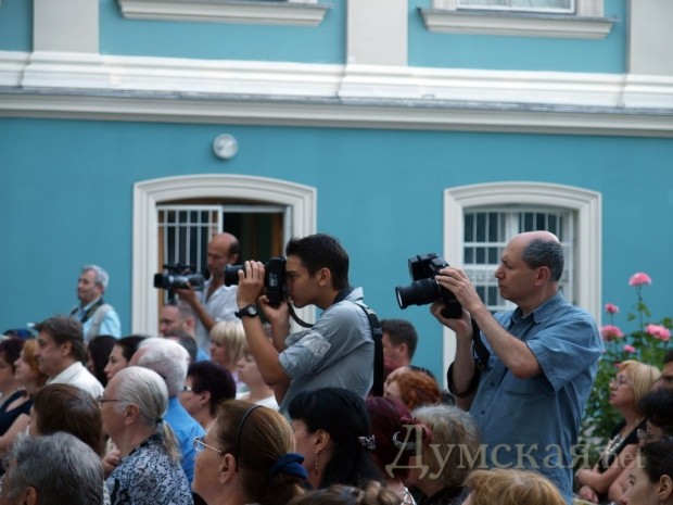 По мнению Владимира Островского, дворик обладает очень неплохой естественной акустикой. И гости, пришедшие в пятницу вечером на открытие отреставрированного дворика, в этом прекрасно убедились. Солистка театра Музкомедии, лауреат международных конкурсов Людмила Мешкова исполняет арии из опер «Сказка о Царе Салтане» и «Руслан и Людмила». Звучали также арии из оперы «Пиковая дама» в исполнении солиста Одесской Оперы, народного артиста Украины Анатолия Капустина. Также стихи Пушкина весьма драматично декламировал руководитель Одесского театрального лицея Анатолий Падука.