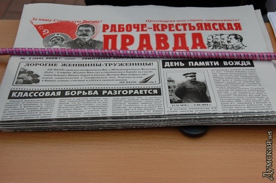 Вчера члены Всесоюзной Коммунистической Партии большевиков (ВКП(б)) и ее украинского отделения — Всеукраинского Союза рабочих (ВСР) решили напомнить о себе одесситам. На Привокзальной площади они под знаменем партии устроили продажу партийной газеты. Как сообщили организаторы «выездного киоска» корреспонденту Думской.net, ВСР - общественная организация, зарегистрированная Минюстом осенью 1995 года. Что же касается ВКП(б), то ее штаб квартира зарегистрирована в России, в Санкт-Петербурге, правда, почему-то «киоскер» назвала этот город Санкт-Ленинградом ![]() СМЕРТЬ РОСІЙСЬКИМ ОКУПАНТАМ! ![]() ![]() Помітили помилку? Виділяйте слова з помилкою та натискайте control-enter |