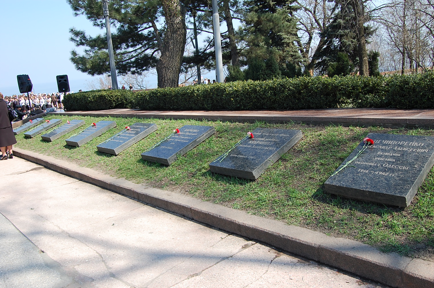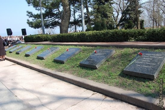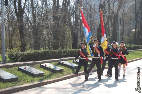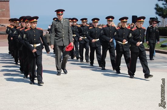 Сегодня на Аллее Славы прошла торжественная передача мемориальной Вахты памяти на Посту №1 караулами, признанными лучшими по итогам несения вахты в 2008 году — школе-интернату №2. Торжественное мероприятие было посвящено 65-летию освобождения Одессы от фашистких захватчиков и открытию сезона Вахты Памяти на Посту №1. Во время мероприятия прошел торжественный мемориальный час в память о героях, защищавших и освобождавших Одессу от фашистких оккупантов. Во время этого часа знамя Поста №1 было торжественно передано учащимся Одесской школы-интерната №2, которым выпала честь первыми в этом году стоять в почетном карауле у памятника Неизвестному матросу. Участники вахты возложили цветы к памятнику, а в торжественно митинге, посвященном этому событию, приняли участие ветераны и постовики прошлых лет. Они вместе со школьниками — участниками Вахты Памяти — почтили память погибших героев минутой молчания. СМЕРТЬ РОСІЙСЬКИМ ОКУПАНТАМ! Помітили помилку? Виділяйте слова з помилкою та натискайте control-enter |