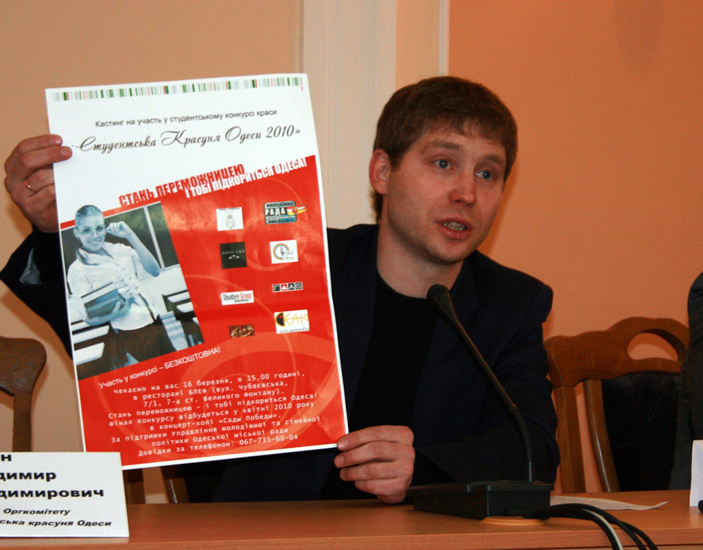 Сегодня в помещении одесского горисполкома состоялась пресс-конференция, посвящённая уже второму конкурсу красоты среди студенток города «Студенческая красавица Одессы». По словам главы оргкомитета конкурса — депутата молодёжного совета Владимира Торгана — идея его создания принадлежит именно молодёжному совету города, на одном из заседаний которого в прошлом году было решено создать единственный незаангажированный конкурс красоты в Одессе. Кастинг на конкурс будет проходить 16 марта в 15:00 в ресторане «Блеф» на 7-ой станции Большлго Фонтана, а финал конкурса пройдет в концерт-холе «Сады-Победы» 8 апреля в 19:00. Участие в конкурсе абсолютно бесплатно, что не раз подчёркивал в ходе пресс-конференции заместитель главы управления молодёжной и семейной политики горсовета — Роман Девятов. По его словам, всем ректорам одесских вузов уже разосланы письма с просьбой подключиться к организации и информированию своих студентов о готовящемся празднике красоты. В связи с тем, что по мнению организаторов «Конкурс Бикини» себя изжил и плохо сочетается со студенческим форматом конкурса, его решили заменить конкурсом талантов, а также новой главной изюминкой мероприятия — «украинским мотивом». Как разъяснил хореограф-постановщик конкурса Валентин Порунько, этот термин означает, что сцена будет декорирована в украинском стиле, будут специальные костюмы, а также этническая украинская музыка, обработанная современными ди-джеями. СМЕРТЬ РОСІЙСЬКИМ ОКУПАНТАМ! Помітили помилку? Виділяйте слова з помилкою та натискайте control-enter |
