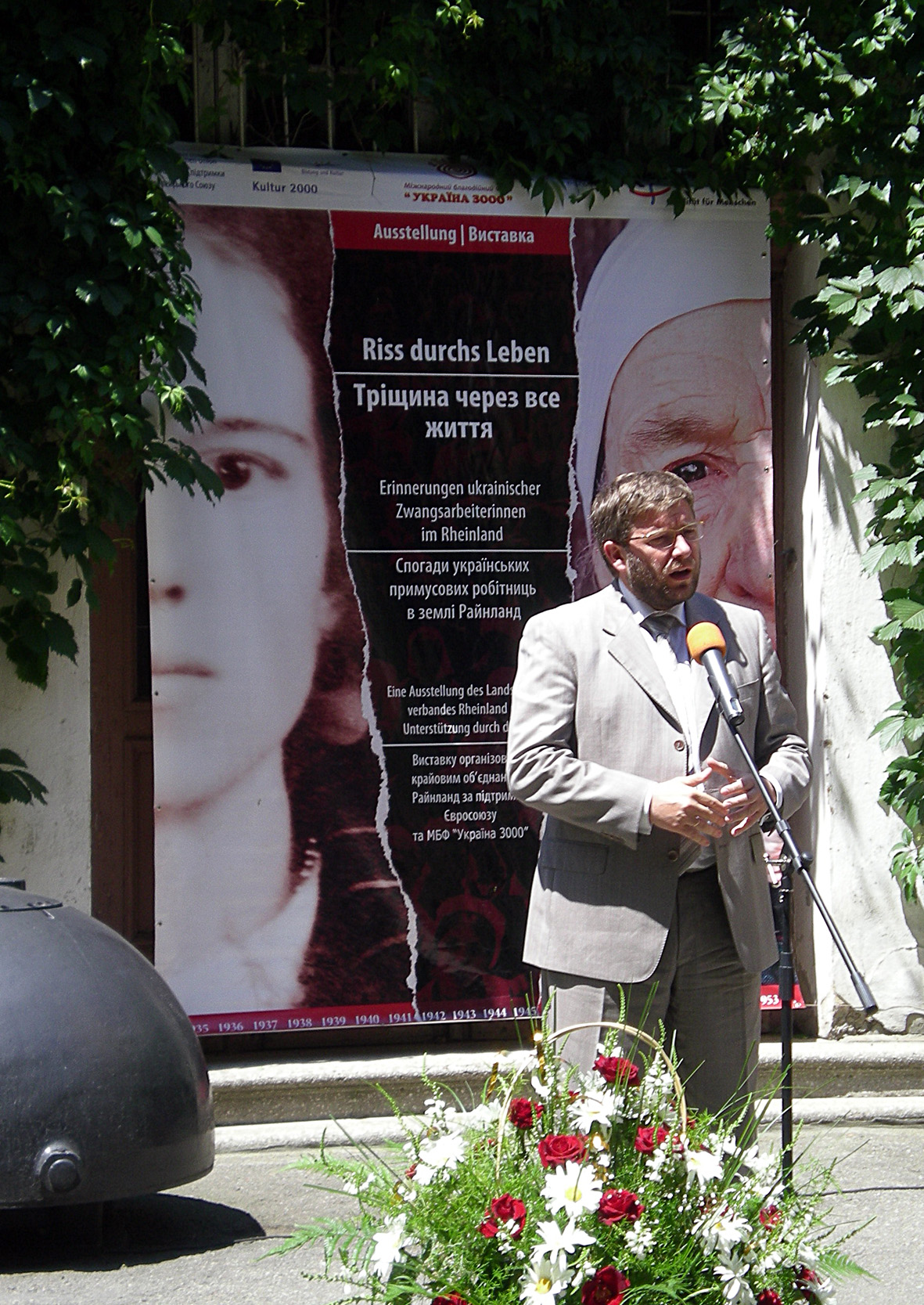В Одесском историко-краеведческом музее открылась выставка «Трещина через всю жизнь»Сегодня в Одесском историко-краеведческом музее прошла выставка «Трещина через всю жизнь», которая основывается на воспоминаниях украинских женщин-фремдарбайтеров в земле Райланд. Выставка подготовлена краевым объединением Райнланд (ФРГ) и представлена в рамках программы «Уроки истории» Международного благотворительного фонда «Украина 3000». Среди экспонатов — лица десяти женщин, в годы войны насильно привезенных в Германию в качестве рабочей силы. В открытии выставки приняли участие и.о. главы Нацсовета по вопросам телевидения и радиовещания Андрей Мирошниченко, глава СБУ Валентин Наливайченко, руководитель проектов краевого объединения Райнланд Беттина Буреш, руководитель программы «Уроки истории» Олеся Стасюк, секретарь Одесского городского совета Александр Прокопенко, заместитель председателя областного совета Георгий Арабаджи. Выставка будет находиться в городах Украины в течение года. СМЕРТЬ РОСІЙСЬКИМ ОКУПАНТАМ! Помітили помилку? Виділяйте слова з помилкою та натискайте control-enter Новини по цій темі: 4 серпня 2009: Соло для фотоаппарата без оркестра 25 липня 2009: Тюнингованные автомобили представлены на Морвокзале 9 липня 2009: "Мир Православный" - уже десятая выставка 25 червня 2009: 9 июля откроется 10-я, юбилейная выставка "Мир православный" 23 січня 2009: Выставка ко Дню соборности Украины |