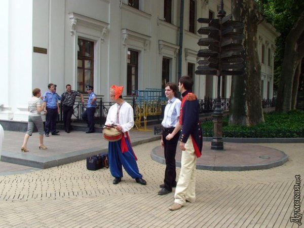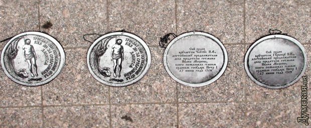 Сегодня представители партии «Родина» в костюмах офицеров Российской армии 18 века и форме Украинского казачества провели торжественную церемонию вручения ордена Иуды одесским чиновникам: мэру Одессы Эдуарду Гурвицу, начальнику управления внутренней политики Наталье Чайчук, начальнику управления по делам семьи и молодёжи Андрею Юсову, и главе одесского отделения «Просвиты» Александру Степанченко. Этот орден учредил Петр Первый в 1709 году, сразу после победы в Полтавской битве, для награждения за совершённое предательство гетьмана Мазепы. Четыре ордена были возложены перед главным входом в горсовет (на место, указанное представителем милиции) со словами: «Награды найдут своих героев». Представителей правопорядка, по нашим оценкам, было раза в три больше, чем участников акции. Любопытный исторический факт озвучил представитель партии «Родина» Юрий Ткачук в интервью нашему корреспонденту. Оказываеться, Петр Первый вместе с учреждением ордена издал указ, в котором запретил под страхом наказания упрекать украинцев в предательстве Мазепы. СМЕРТЬ РОСІЙСЬКИМ ОКУПАНТАМ! Помітили помилку? Виділяйте слова з помилкою та натискайте control-enter