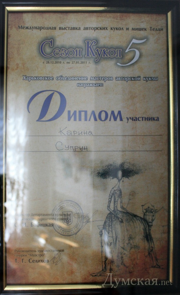 В одесском музее Пушкина открылась необычная выставка — авторских кукол. В экспозиции представлены самые различные куклы — от сказочных персонажей до героев итальянских комедий. Автор всех кукол — харьковская художница-самоучка Карина Супрун.