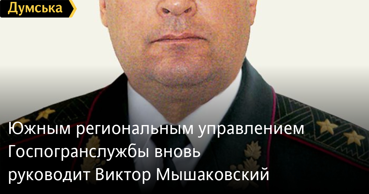 Южным региональным управлением Госпогранслужбы вновь руководит Виктор МышаковскийНачальником Южного регионального управления Госпогранслужбы Украины вновь назначен генерал-лейтенант Виктор Мышаковский. Такое решение было принято на заседании коллегии.