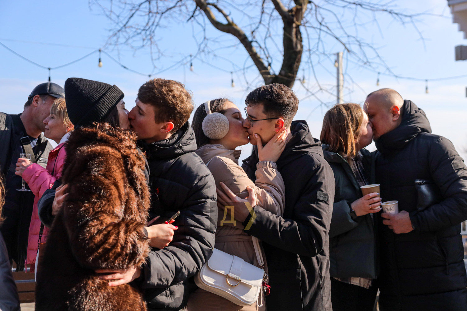 «Це важливий день для всіх закоханих. — вважає учасниця акції Ніна. Зі своїм хлопцем Владом вони вже шість років. — Я думаю, що дуже корисно об'єднати людей з такої прекрасної нагоди, це надихає і дарує надію на те, що все буде добре».