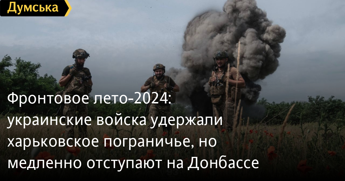 Фронтовое лето-2024: украинские войска удержали харьковское пограничье, но медленно отступают на ДонбассеЗаканчивается первый месяц лета 2024 года, на которое как украинская разведка, так и западные союзники прочили большое российское наступление, если не прорыв на востоке Украины. К счастью, пока что этого не произошло, однако ситуация на фронте остается крайне тяжелой. На востоке Украины врагам удается теснить наших защитников. Военный обозреватель «Думской» Николай Яковенко разбирался, что происходит на ключевых направлениях. ДОНБАСС Итак, на Донбассе сейчас продолжается медленное, ползучее наступление российских войск, которое началось еще в январе с обострения ситуации в Авдеевке, обернувшимся оккупацией этого важного населенного пункта и довольно быстрым продвижением противника на значительное расстояние за ним. За полгода оккупанты продвинулись здесь примерно на 26 километров, прорвали вторую линию обороны, оккупировали более десятка сел и приблизились на расстояние примерно 7 км к важной транспортной артерии, трассе Покровск – Константиновка, которая уже давно простреливается вражеской артиллерией, а с недавних туда долетают и российские FPV-дроны. 26 июня президент, Верховный главнокомандующий Владимир Зеленский посетил прифронтовой Покровск, что сигнализирует о том, что Ставка осознает сложившуюся ситуацию и угрозы. Однако это не единственный центр тяжести вражеского наступления на востоке. Ежедневно продолжаются крайне ожесточенные бои в районе Часова Яра на запад от Бахмута. Некоторое время назад российские войска смогли зайти и даже закрепиться в микрорайоне Канал на западных окраинах города, но не смогли прорваться дальше из-за водной артерии, которая отрезает его от остальной агломерации. Тем не менее ситуация там остается шаткой. В течение последних нескольких дней Силы обороны при значительном напряжении сил провели в этом направлении ограниченный контрудар и выбили врагов из значительной части района, о чем 27 июня отчитались представители оперативно-стратегической группировки сил «Хортица». В последние недели оккупанты активизировались и в направлении Красногоровки, которую штурмуют как с востока, так и с юга. Россияне смогли частично занять населенный пункт. Там продолжаются ожесточенные бои. Обострилась ситуация и в районе села Нью-Йорк на восток от Горловки. Это сейчас единственный небольшой участок фронта протяженностью около 9 километров, на котором линия соприкосновения остается практически неизменной со времен проведения Операции объединенных сил. Можно констатировать, что такими ползучими темпами противнику удается реализовывать оперативные задачи по вытеснению украинских войск из Донецкой области. После возобновления поставок американского вооружения и боеприпасов скорость продвижения врага удалось снизить, но остановить его и окончательно стабилизировать фронт пока не удается. В первую очередь тут сказывается значительное численное превосходство россиян и их самоубийственная настойчивость, что приводит к ежедневным банзай-атакам, которые рано или поздно достигают своих результатов. Активность оккупантов в Луганской области значительно ниже и в основном сводится к попыткам прощупывать подходы к Лиману, где периодически горят колонны вражеской техники. Продолжаю