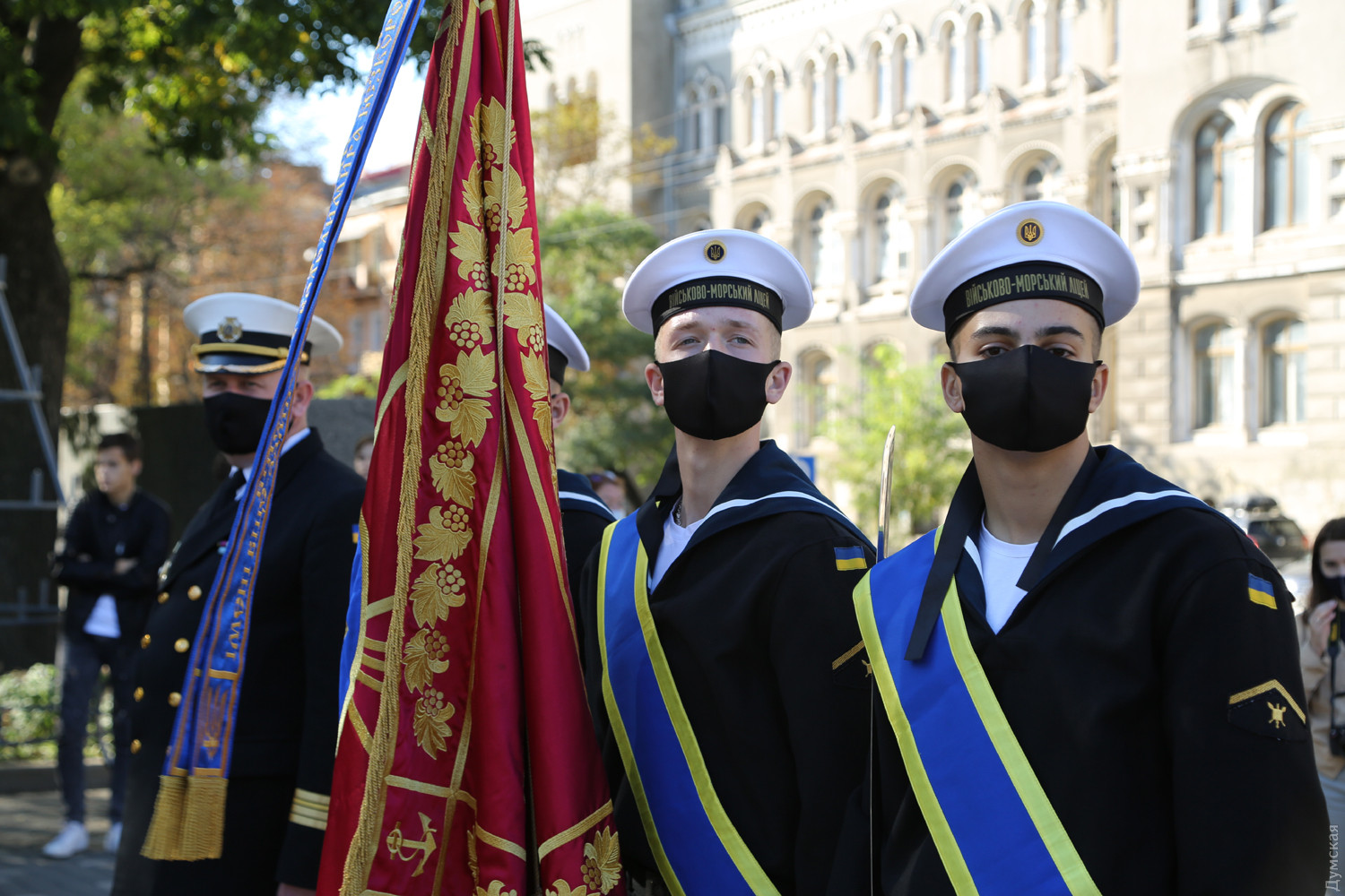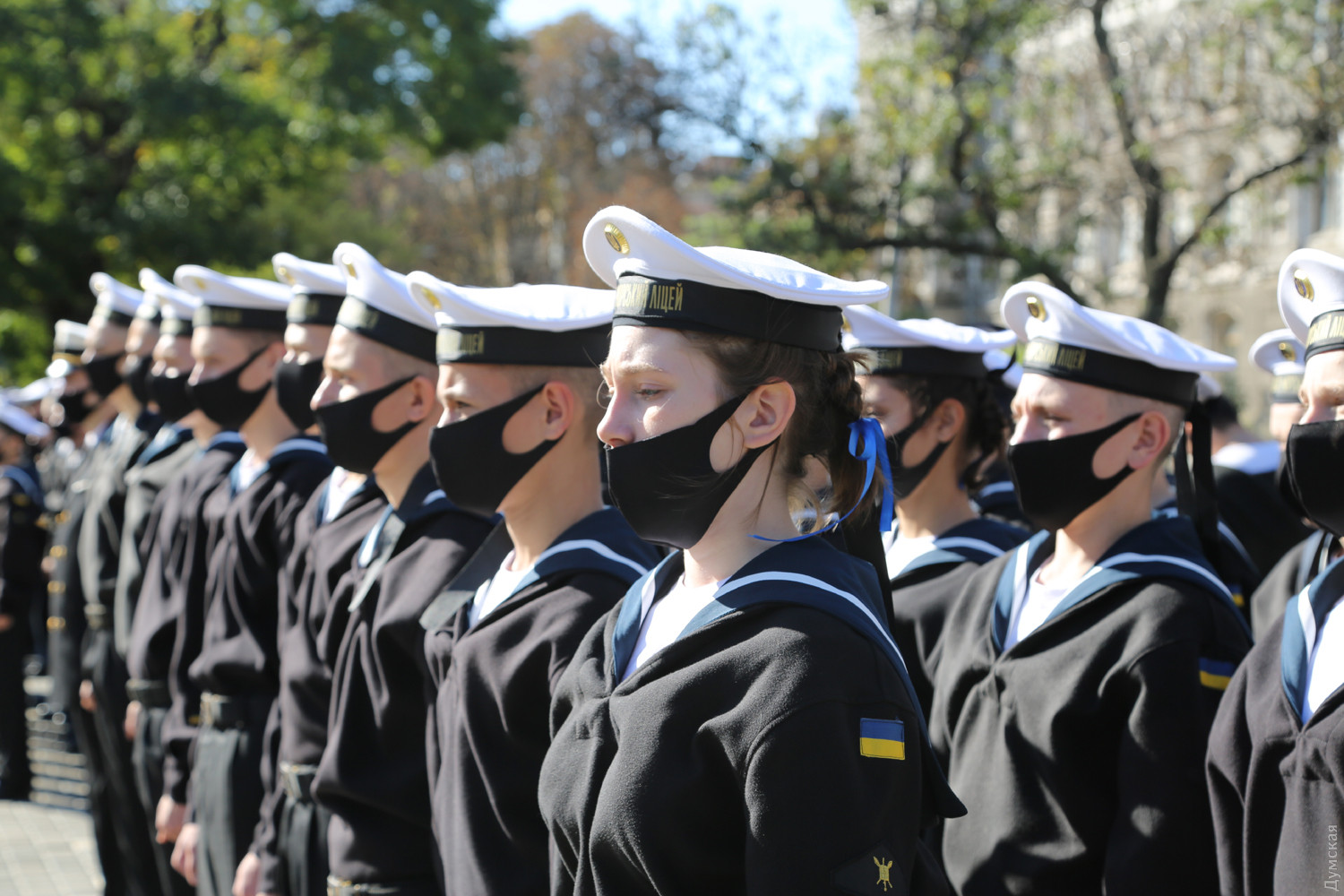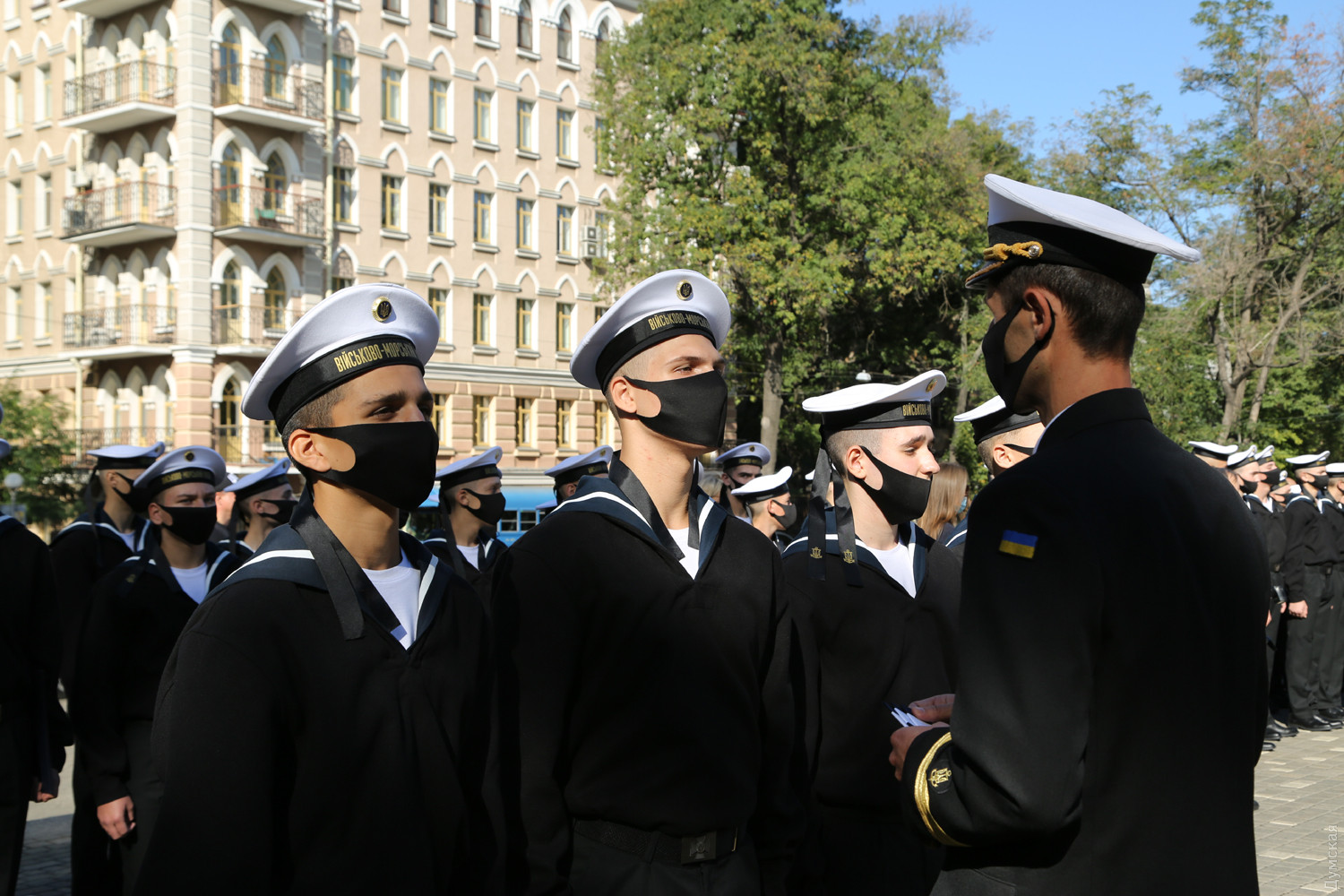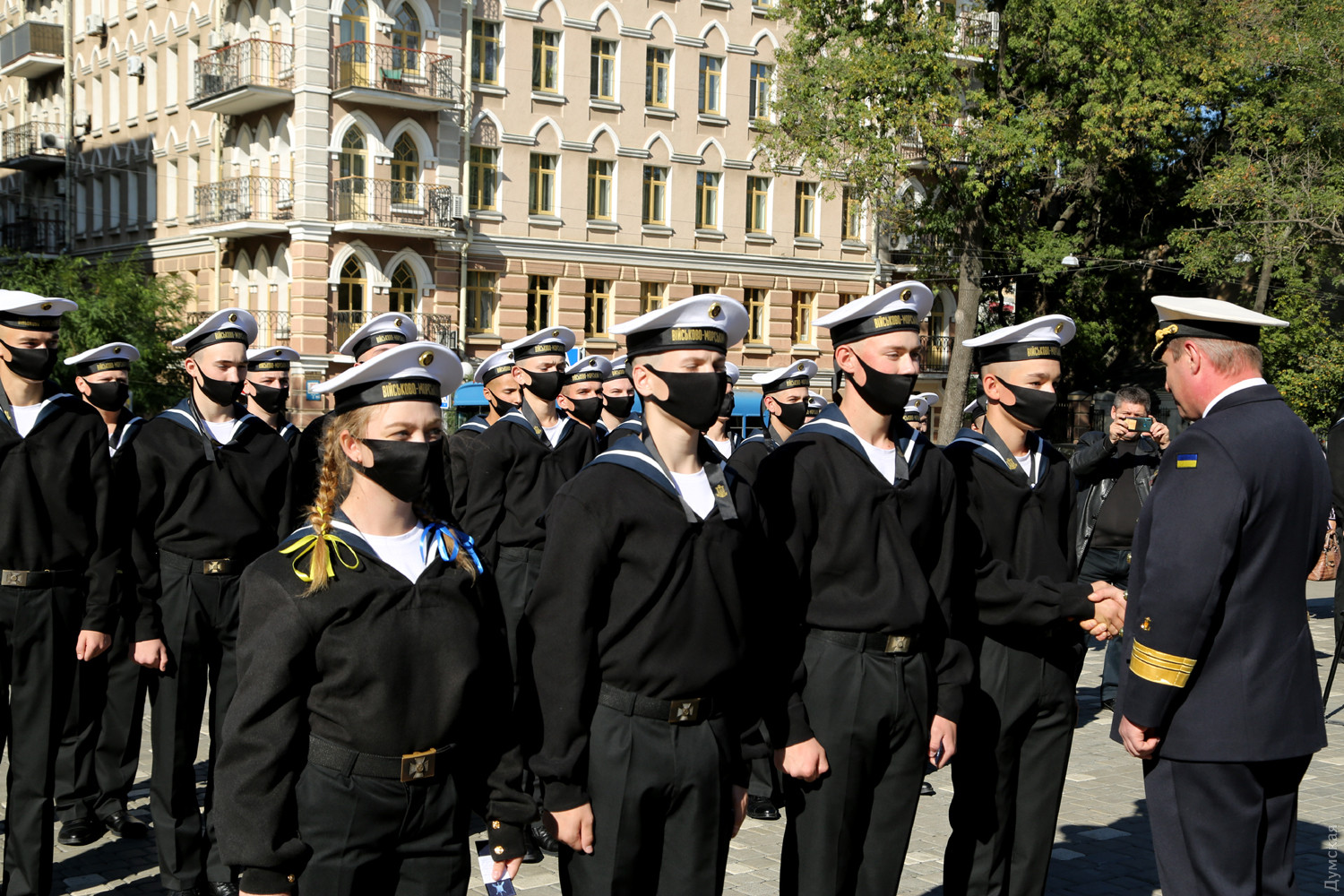 Учащиеся Одесского военно-морского лицея принесли клятву на верность украинскому народуКлятву на верность украинскому народу принесли сегодня, в День защитника Украины, учащиеся Одесского лицея военно-морских сил имени вице-адмирала Владимира Бескоровайного. Как передает корреспондент «Думской», церемония прошла возле памятника Тарасу Шевченко в одноименном парке. Всего в лицеисты приняли больше 100 человек, в том числе двенадцать девушек. Заместитель командующего ВМС Украины вице-адмирал Андрей Тарасов заявил, что сегодня бывшие школьники стали частью одного большого экипажа Военно-морских сил: «На флоте важны не только корабли и техника, а прежде всего люди, которые на них служат», — сказал военачальник. Тарасов поведал лицеистам и всем собравшимся о том, как в Украине строятся новые военные базы и новые корабли и как военные моряки помнят о погибших за свободу и независимость нашей страны. Вице-адмирал подчеркнул, что лицеисты присягают на верность именно в День защитника Украины — в знак памяти и уважения к украинским военным традициям и стремлению победить. Начальник лицея ВМС капитан первого ранга Виктор Шмыгановский пожелал своим новым ученикам успехов в учебе и желания побеждать. Шестнадцать лицеистов старших классов за хорошую учебу и поведение получили сегодня звание младших старшин. Мероприятие прошло с соблюдением всех мер безопасности — лицеисты, их родители и преподаватели были в защитных масках и старались соблюдать социальную дистанцию. Военно-морской лицей имени адмирала Бескоровайного был открыт 1 сентября 2009 года в Севастополе. Весной 2014 года, после начала вооруженной агрессии России и захвата Крымского полуострова, его передислоцировали в Одессу. В 2016 году состоялся первый одесский выпуск лицеистов, большинство которых стали курсантами института военно-морских сил национального университета «Одесская морская академия» и других военных вузов. Многие сейчас командуют боевыми катерами и подразделениями ВМСУ. Девушек принимают в лицей с 2019 года. Репортаж Алены Балабы, фото автора СМЕРТЬ РОССИЙСКИМ ОККУПАНТАМ! Заметили ошибку? Выделяйте слова с ошибкой и нажимайте control-enter |