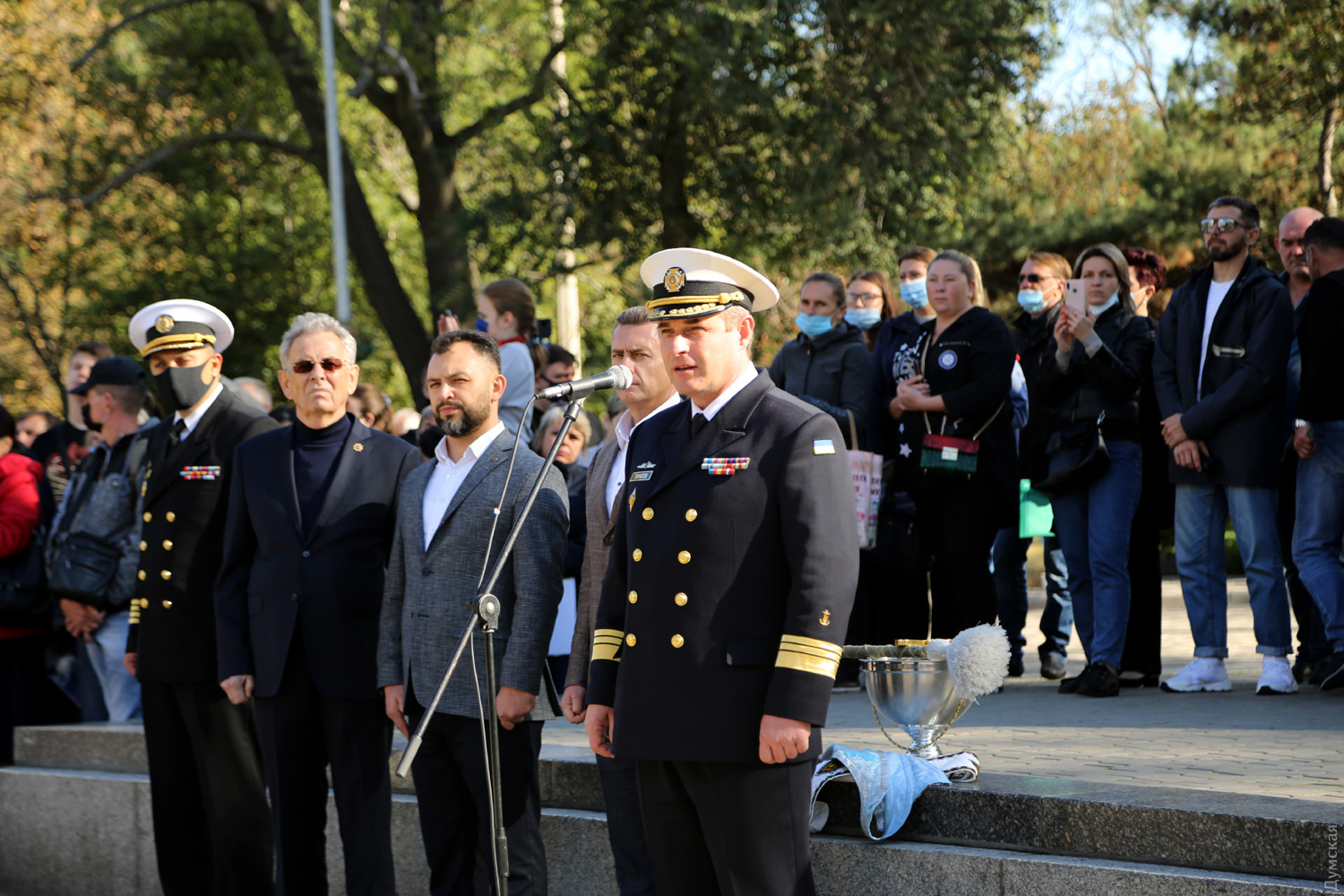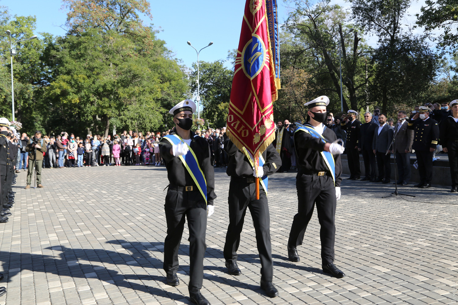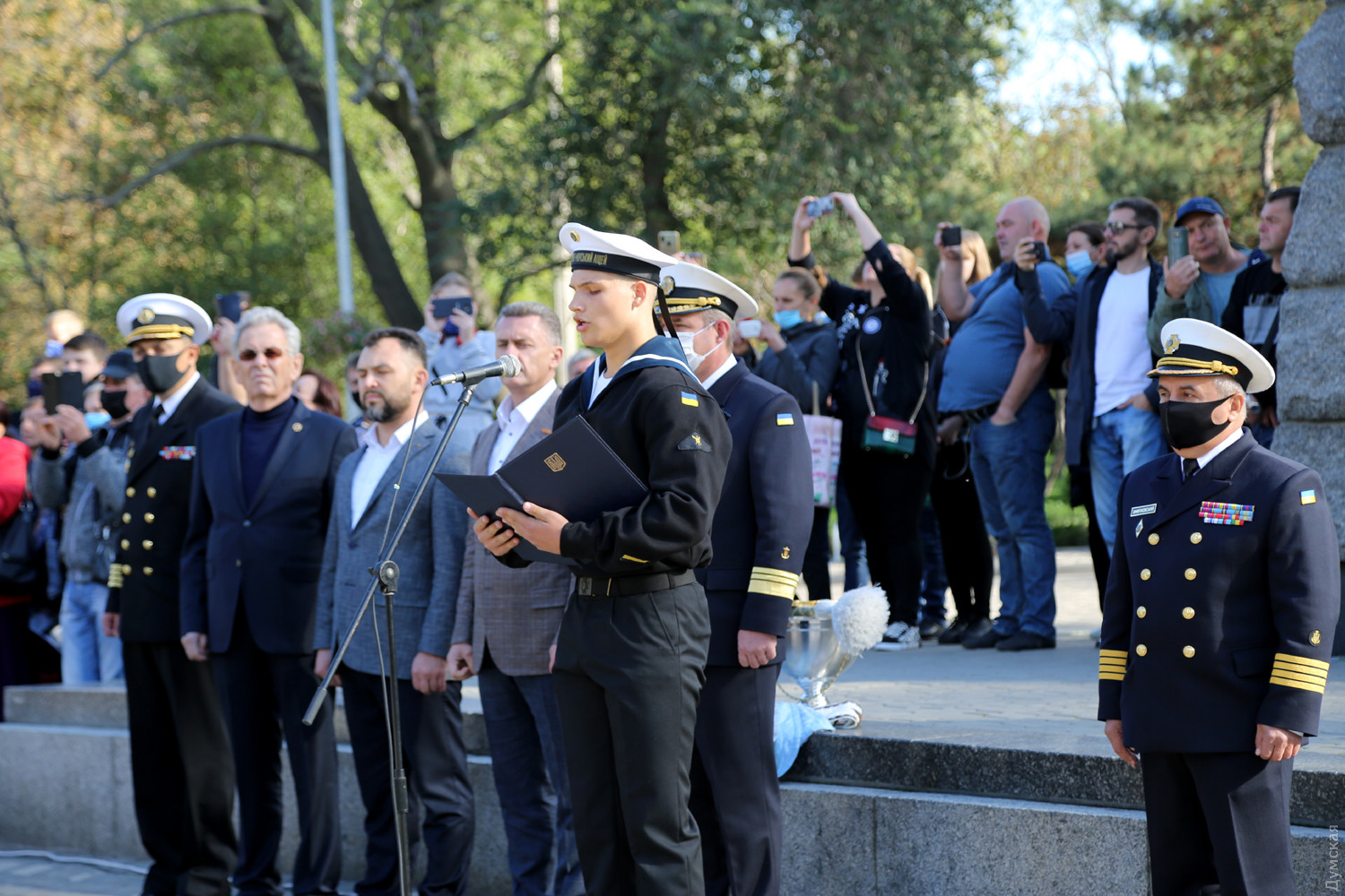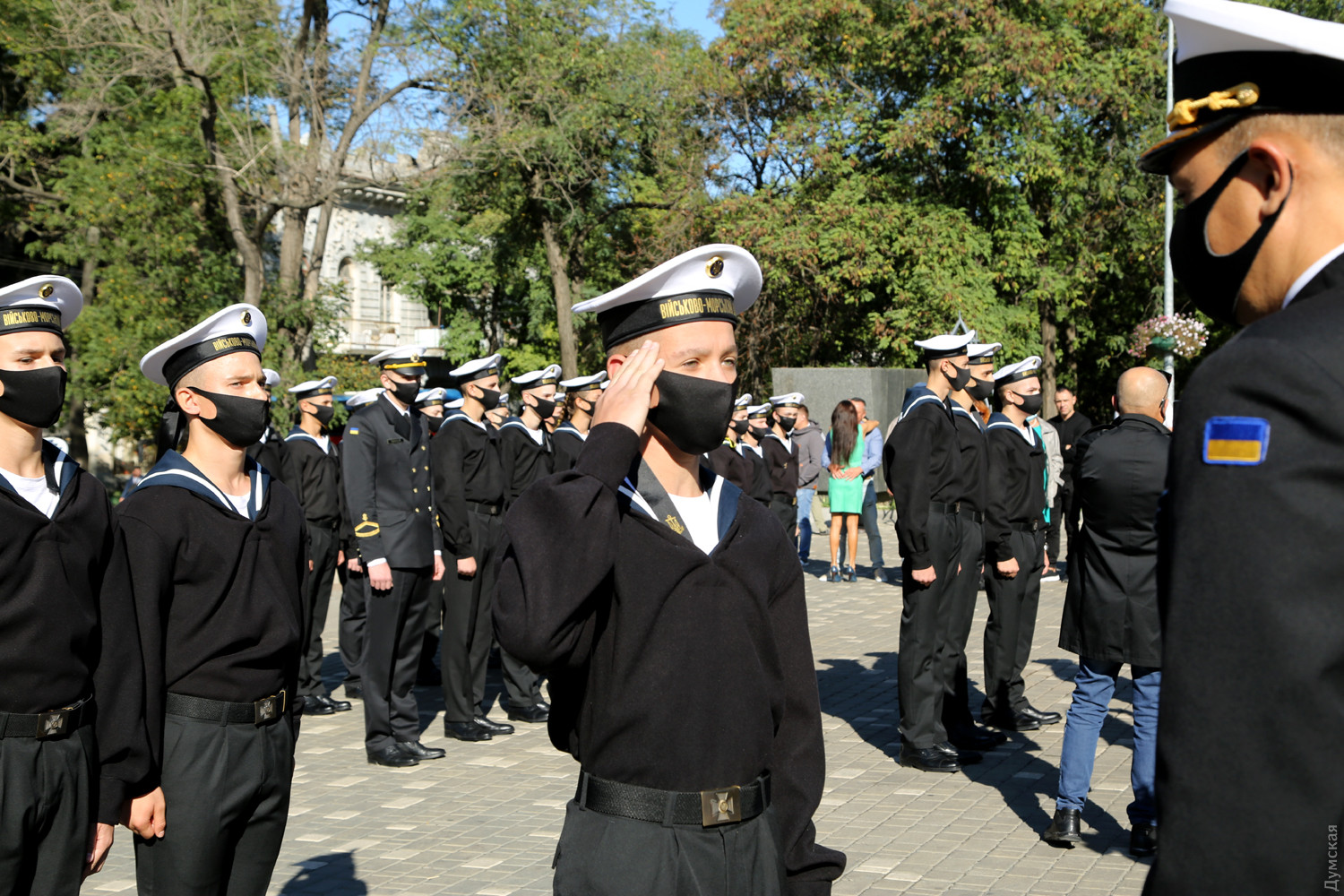 Учащиеся Одесского военно-морского лицея принесли клятву на верность украинскому народуКлятву на верность украинскому народу принесли сегодня, в День защитника Украины, учащиеся Одесского лицея военно-морских сил имени вице-адмирала Владимира Бескоровайного. Как передает корреспондент «Думской», церемония прошла возле памятника Тарасу Шевченко в одноименном парке. Всего в лицеисты приняли больше 100 человек, в том числе двенадцать девушек. Заместитель командующего ВМС Украины вице-адмирал Андрей Тарасов заявил, что сегодня бывшие школьники стали частью одного большого экипажа Военно-морских сил: «На флоте важны не только корабли и техника, а прежде всего люди, которые на них служат», — сказал военачальник. Тарасов поведал лицеистам и всем собравшимся о том, как в Украине строятся новые военные базы и новые корабли и как военные моряки помнят о погибших за свободу и независимость нашей страны. Вице-адмирал подчеркнул, что лицеисты присягают на верность именно в День защитника Украины — в знак памяти и уважения к украинским военным традициям и стремлению победить. Начальник лицея ВМС капитан первого ранга Виктор Шмыгановский пожелал своим новым ученикам успехов в учебе и желания побеждать. Шестнадцать лицеистов старших классов за хорошую учебу и поведение получили сегодня звание младших старшин. Мероприятие прошло с соблюдением всех мер безопасности — лицеисты, их родители и преподаватели были в защитных масках и старались соблюдать социальную дистанцию. Военно-морской лицей имени адмирала Бескоровайного был открыт 1 сентября 2009 года в Севастополе. Весной 2014 года, после начала вооруженной агрессии России и захвата Крымского полуострова, его передислоцировали в Одессу. В 2016 году состоялся первый одесский выпуск лицеистов, большинство которых стали курсантами института военно-морских сил национального университета «Одесская морская академия» и других военных вузов. Многие сейчас командуют боевыми катерами и подразделениями ВМСУ. Девушек принимают в лицей с 2019 года. Репортаж Алены Балабы, фото автора СМЕРТЬ РОССИЙСКИМ ОККУПАНТАМ! Заметили ошибку? Выделяйте слова с ошибкой и нажимайте control-enter |