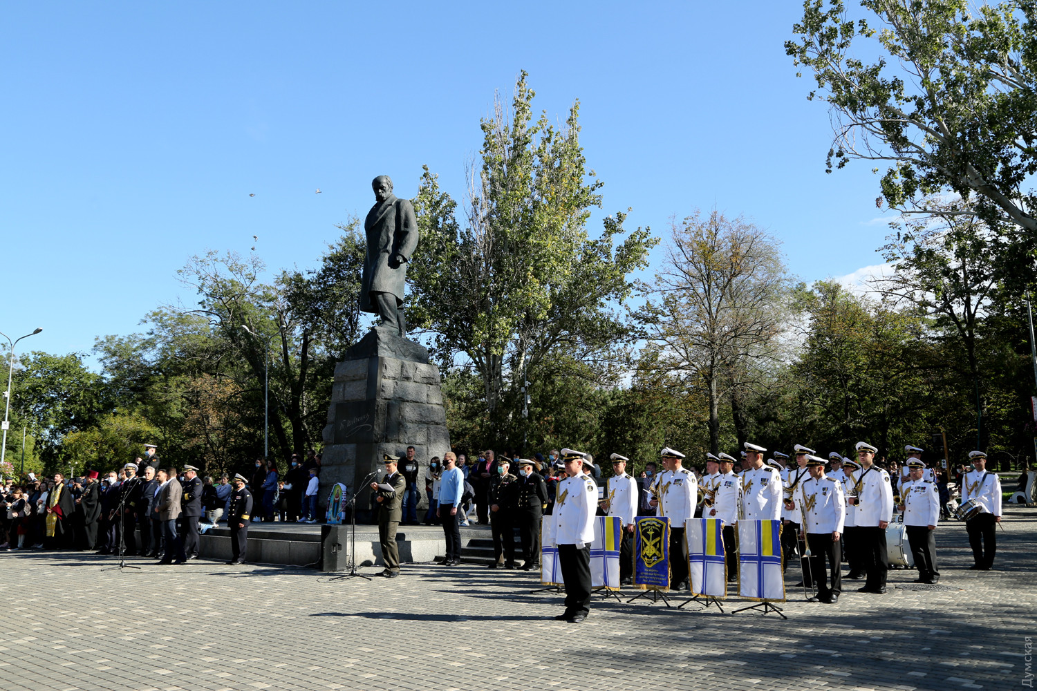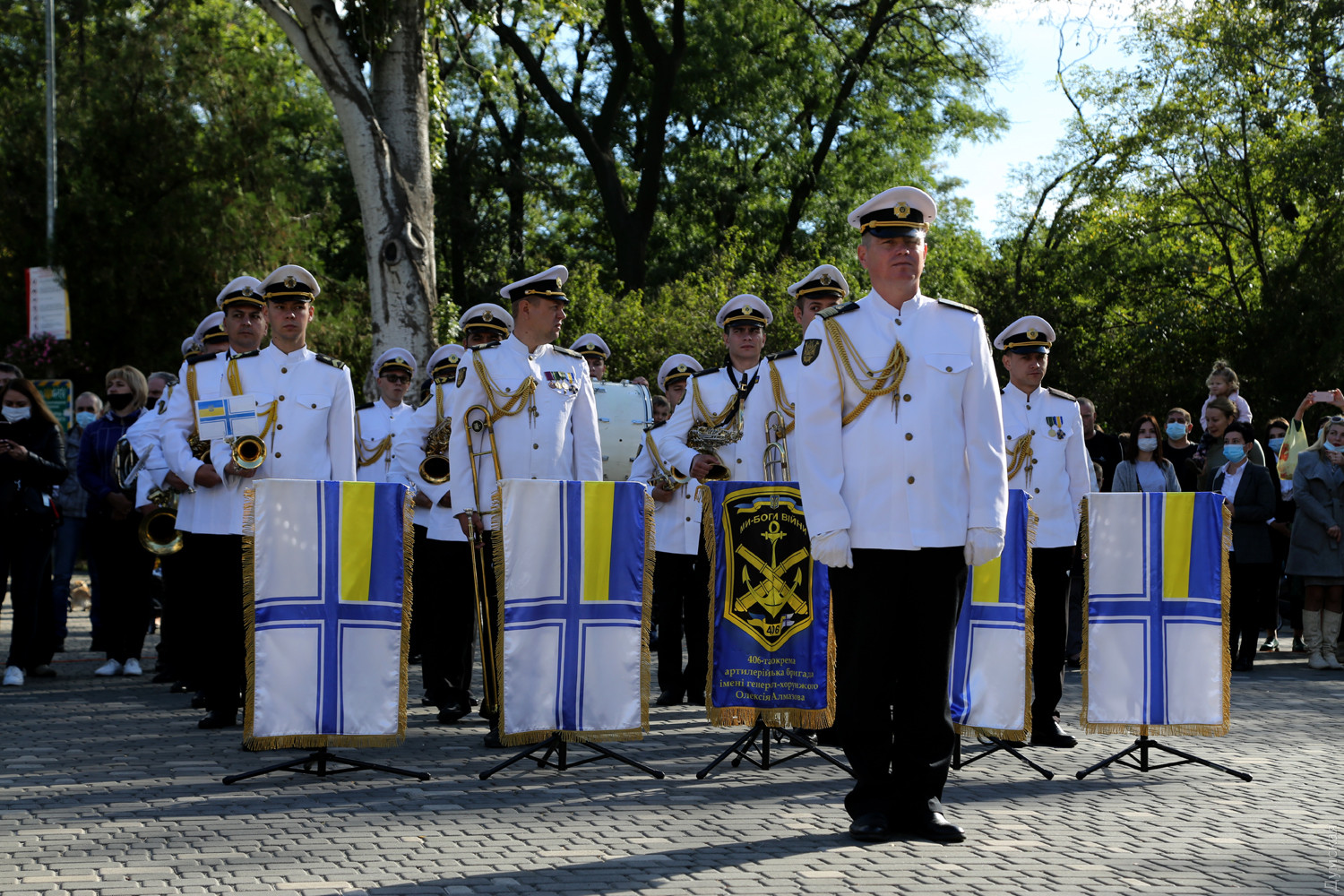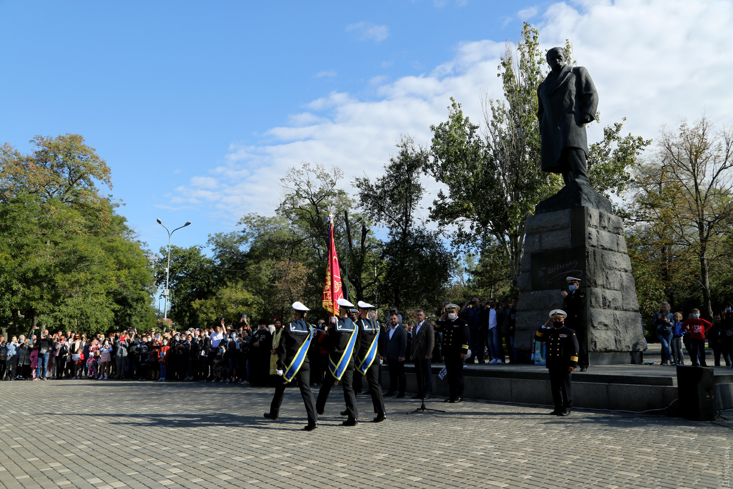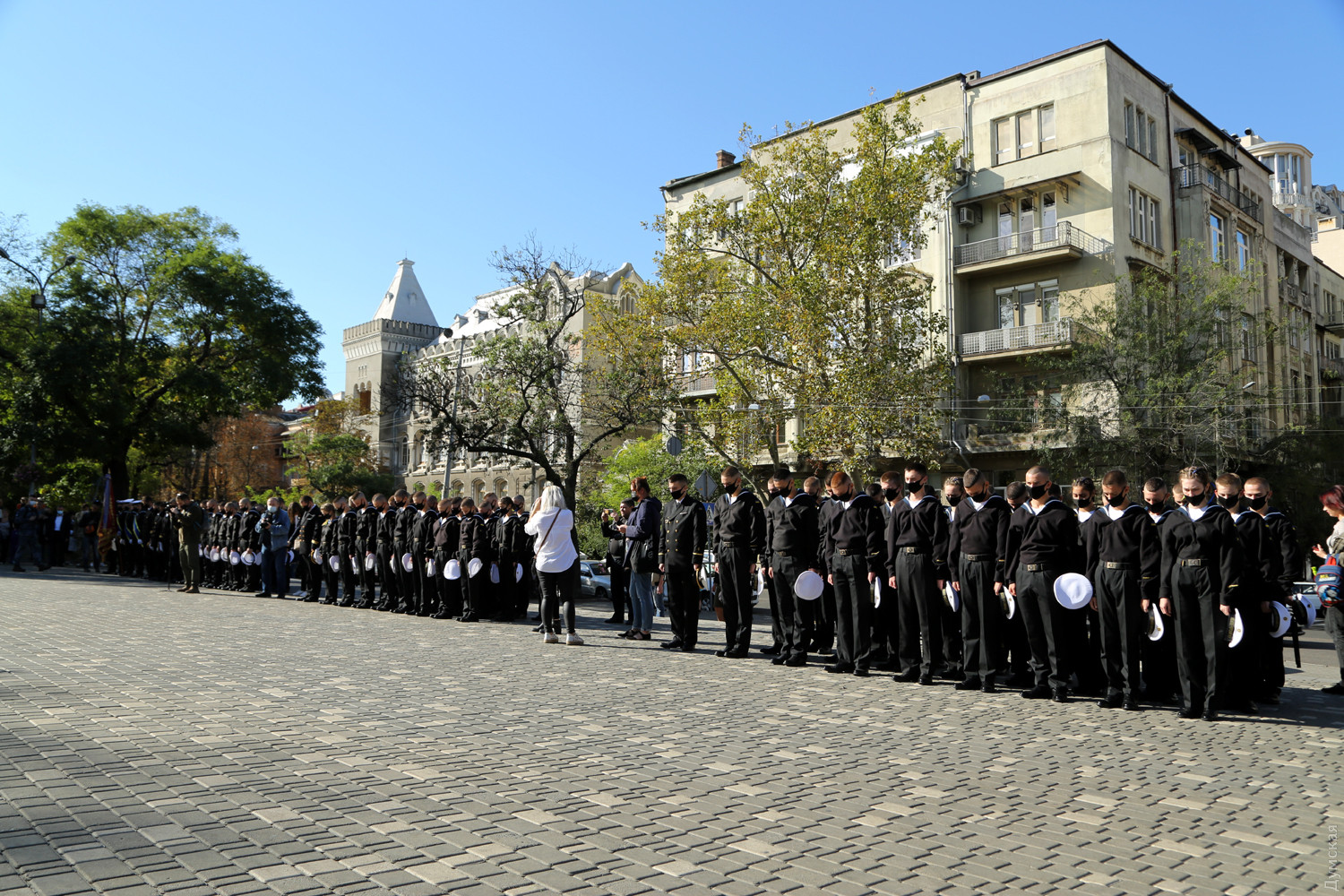 Учащиеся Одесского военно-морского лицея принесли клятву на верность украинскому народуКлятву на верность украинскому народу принесли сегодня, в День защитника Украины, учащиеся Одесского лицея военно-морских сил имени вице-адмирала Владимира Бескоровайного. Как передает корреспондент «Думской», церемония прошла возле памятника Тарасу Шевченко в одноименном парке. Всего в лицеисты приняли больше 100 человек, в том числе двенадцать девушек. Заместитель командующего ВМС Украины вице-адмирал Андрей Тарасов заявил, что сегодня бывшие школьники стали частью одного большого экипажа Военно-морских сил: «На флоте важны не только корабли и техника, а прежде всего люди, которые на них служат», — сказал военачальник. Тарасов поведал лицеистам и всем собравшимся о том, как в Украине строятся новые военные базы и новые корабли и как военные моряки помнят о погибших за свободу и независимость нашей страны. Вице-адмирал подчеркнул, что лицеисты присягают на верность именно в День защитника Украины — в знак памяти и уважения к украинским военным традициям и стремлению победить. Начальник лицея ВМС капитан первого ранга Виктор Шмыгановский пожелал своим новым ученикам успехов в учебе и желания побеждать. Шестнадцать лицеистов старших классов за хорошую учебу и поведение получили сегодня звание младших старшин. Мероприятие прошло с соблюдением всех мер безопасности — лицеисты, их родители и преподаватели были в защитных масках и старались соблюдать социальную дистанцию. Военно-морской лицей имени адмирала Бескоровайного был открыт 1 сентября 2009 года в Севастополе. Весной 2014 года, после начала вооруженной агрессии России и захвата Крымского полуострова, его передислоцировали в Одессу. В 2016 году состоялся первый одесский выпуск лицеистов, большинство которых стали курсантами института военно-морских сил национального университета «Одесская морская академия» и других военных вузов. Многие сейчас командуют боевыми катерами и подразделениями ВМСУ. Девушек принимают в лицей с 2019 года. Репортаж Алены Балабы, фото автора СМЕРТЬ РОССИЙСКИМ ОККУПАНТАМ! Заметили ошибку? Выделяйте слова с ошибкой и нажимайте control-enter |