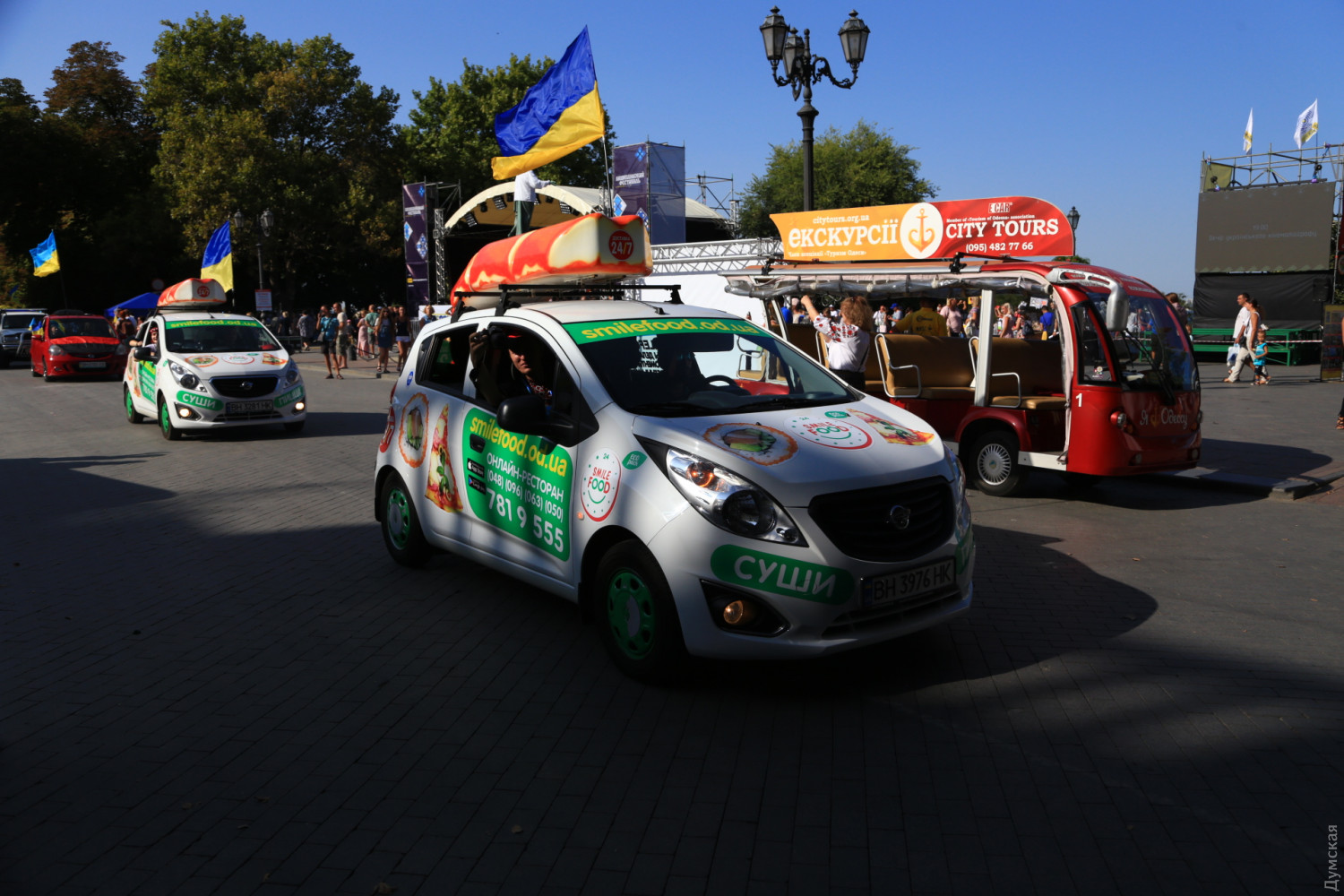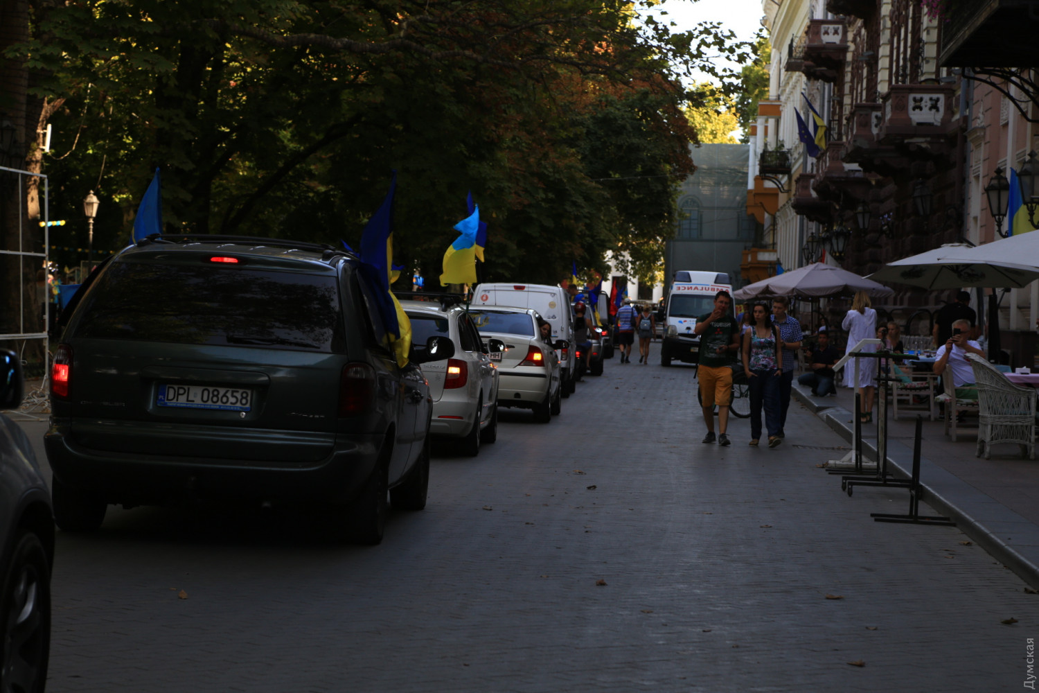 Более пятидесяти автомобилей стартовали сегодня вечером от Дюка в традиционном автопробеге по случаю Дня Независимости Украины. Пробег проходит в рамках Вышиванкового фестиваля. Украшенные большими флагами нашей страны и вышиванками машины проследовали улицами Одессы до площади 10 Апреля и обратно к Дюку. Пассажиры приветствовали одесситов из авто.