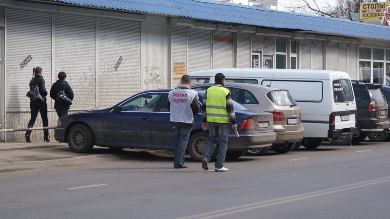 Тем не менее, перед видеокамерой парковщики утверждают, что работают без заработной платы и всю выручку отдают начальству.