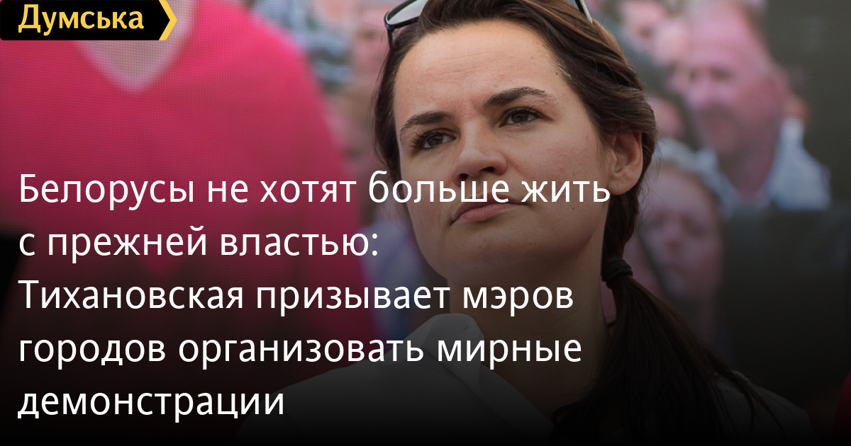 «Белорусы не хотят больше жить с прежней властью»: Тихановская призывает мэров городов организовать мирные демонстрацииГлавная оппонентка действующего президента Беларуси Светлана Тихановская из Литвы записала и опубликовала новое видеообращение к гражданам своей страны. Она заявила, что люди не смогут больше жить со старой властью. В связи с этим она просит мэров всех белорусских городов 15 и 16 августа стать организаторами мирных массовых собраний. «Нам нужно остановить насилие на улицах белорусских городов. Мирный выход граждан на улицы власть превратила в кровавую бойню. Ситуация критическая. Для каждого из нас, для сторонников перемен, человеческая жизнь — это самое ценное. Я прошу власть пойти на диалог. Я прошу всех мэров городов 15 и 16 августа выступить организаторами мирных массовых собраний в каждом городе», — заявила Тихановская. Она также добавила, что ее поддержка составила от 50-60% по стране, а в некоторых городах доходила до 90%. «В его победу никто не верит», — добавила она. Напомним, оппонентка Лукашенко Светлана Тихановская под давлением белорусских властей покинула страну и приехала в Литву. Ранее она записала обращение к гражданам своей страны, в котором просила не выходит на протесты. Оппозиция и протестующие уверены, что она записала это видео не по доброй воле, а под угрозами в адрес ее близких и друзей, которые были задержаны ранее. СМЕРТЬ РОССИЙСКИМ ОККУПАНТАМ! Заметили ошибку? Выделяйте слова с ошибкой и нажимайте control-enter |