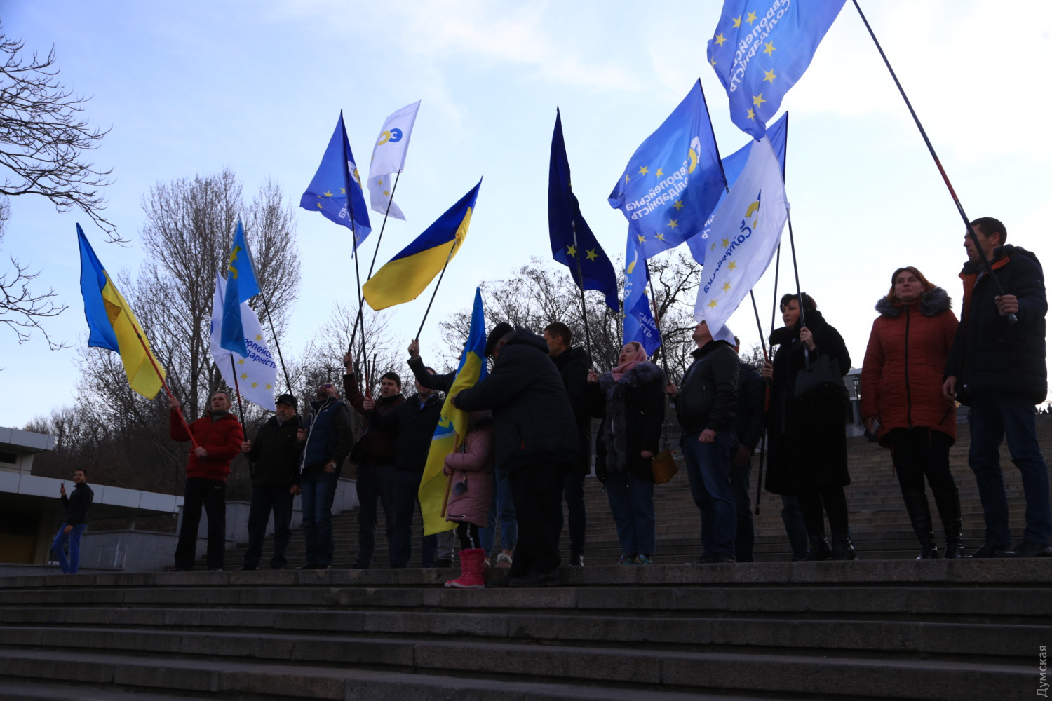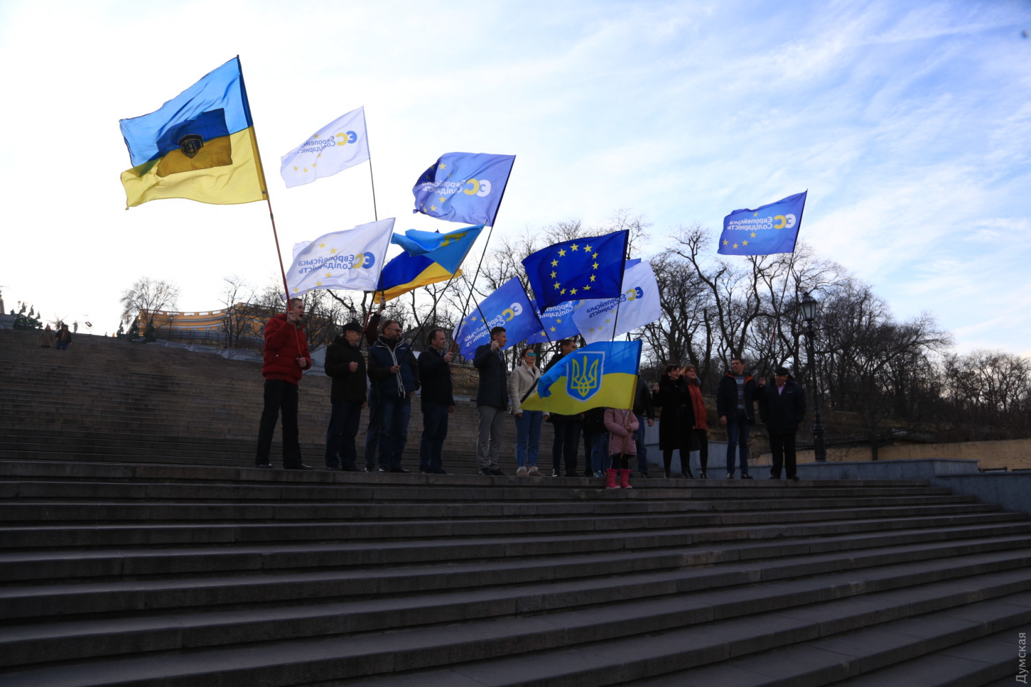 По улицам Одессы прошел автопробег, посвященный Дню Соборности Украины (политика)Сегодня днем в Одессе прошел автопробег, посвященный Дню Соборности Украины. Около двух десятков автомобилей, украшенных флагами Украины и Евросоюза, проследовали от памятника Шевченко в одноименном парке к памятнику Дюку, что на Приморском бульваре. Организатором акции стала Одесская территориальная организация партии «Европейская солидарность». Сегодняшний автомобильный марш по улицам Одессы стал шестым по счету, впервые он состоялся в январе 2015 года. Участники акции отметили, что подобные мероприятия укрепляют единство нашей нации, а День Соборности — один из самых ярких праздников украинской государственности. «Мы, украинцы, очень разные. У нас разные церкви и в быту мы говорим на разных языках. Иногда мы спорим и расходимся во взглядах на события, но мы объединены любовью к Украине и вместе мечтаем о европейской интеграции», — подчеркнула руководитель секретариата Одесской территориальной организации партии «Европейская солидарность» Валентина Шульц. СМЕРТЬ РОССИЙСКИМ ОККУПАНТАМ! Заметили ошибку? Выделяйте слова с ошибкой и нажимайте control-enter |