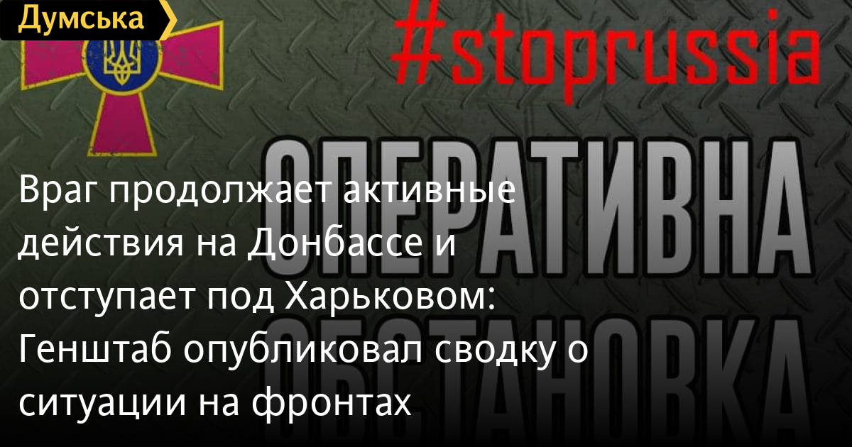 Враг продолжает активные действия на Донбассе и отступает под Харьковом: Генштаб опубликовал сводку о ситуации на фронтахИдут семьдесят седьмые сутки героического сопротивления украинского народа, который противостоит полномасштабному вторжению россии в Украину. Генеральный штаб Вооруженных сил Украины опубликовал свежую сводку о ситуации на фронтах российско-украинской войны. Противник не прекращает наступление в Восточной оперативной зоне. Наиболее активны оккупанты, как и прежде, на слобожанском и донецком направлениях. На волынском и полесском направлениях противник активных действий не предпринимал. Продолжает инженерное оборудование оборонных позиций вдоль границы в Брестской и Гомельской областях. В Брестской и Гродненской областях проводятся сборы с привлечением военнообязанных запаса. Сохраняется угроза ракетных и авиационных ударов по Украине с территории беларуси. На северском направлении враг по-прежнему обеспечивает усиленную охрану участка украинско-российской границы в Брянской и Курской областях. Чтобы не допустить перегруппировки наших войск и передислокации их на другие направления, российские нацисты продолжают проведение демонстрационных действий. В приграничных с Украиной областях враг наращивает систему противовоздушной обороны. В харьковском направлении противник наступательных действий не проводил. Оккупанты перешли к обороне с целью замедления темпа наступления наших войск. В ходе успешных действий подразделений Вооруженных Сил Украины освобожден населенный пункт Питомник Харьковской области. В славянском направлении основные усилия врага сосредотены на создании условий для возобновления наступления. Продолжается пополнение запасов материально-технических средств с целью наращивания наступательных возможностей. На подавляющем большинстве временно занятых территорий Харьковской области с целью предотвращения передачи информации о перемещении российских войск оккупанты подавляют сотовую связь. Местные жители многих населенных пунктов остаются без электроэнергии и воды. Выезд на территорию, подконтрольную Украине российскими оккупантами, запрещен. В донецком направлении основные усилия противника сосредотачиваются на получении полного контроля над Рубежным и наступлении в направлении Лимана. Враг пытается удержать позиции на правом берегу реки Северский Донец, по-прежнему готовится к наступлению в направлении Курахово и Новопавловки. Противник продолжает обстреливать позиции наших войск. Увеличил интенсивность ведения воздушной разведки с применением беспилотников. На бахмутском направлении, с целью подготовки наступления, российские оккупанты продолжают артиллерийские обстрелы позиций наших войск в районах Светлодарска и Троицкого. Противник провел безуспешны штурмы по направлениям на Орехово и Тошковки. В Мариуполе основные усилия врага сосредоточены на блокировке и попытках уничтожения наших подразделений в районе завода «Азовсталь». Противник продолжил наносить артиллерийские и авиационные удары. На криворожском и николаевском направлениях враг активных боевых действий не проводил, обстреливал наши подразделения из ствольной артиллерии и минометов. Проводит инженерное оборудование передовых позиций. В Черноморской и Азовской мор