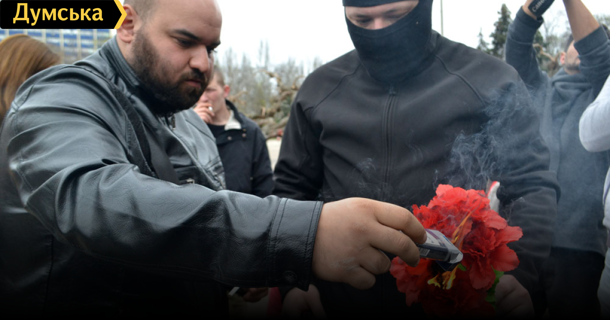Как передает корреспондент «Думской», в это время на месте событий присутствовали несколько сотен проукраинских активистов, а их оппонентов — всего коло двадцати.