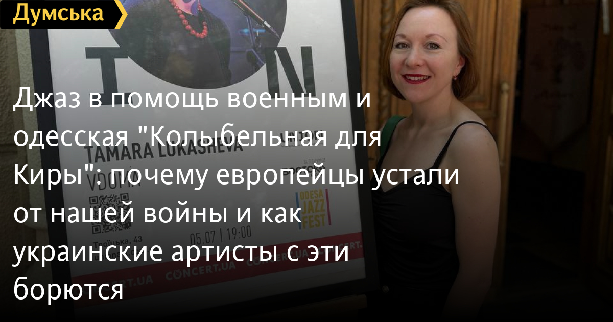 Джаз в помощь военным и одесская «Колыбельная для Киры»: почему европейцы устали от нашей войны и как украинские артисты с эти борютсяУкраинско-немецкая певица Тамара Лукашева, вокальную технику, искренность, самовыражение и знаваемый авторский стиль отмечают самые тонкие ценители джаза посетила Одессу, с которой стала по-настоящему связана. В апреле 2022 Тамара посвятила песню «Колыбельная для Киры» памяти трехмесячной Киры Глодан, которую вместе с мамой и бабушкой убила запущенная российскими нацистами ракета. Позже певица наладила долгосрочное и плодотворное сотрудничество с одесской поэтессой Надеждой Глушковой, стихи которой положила на музыку и сейчас исполняет во многих городах мира. После начала полномасштабной войны вокалистка систематически помогает собирать деньги на помощь украинским военным. «Думская» встретилась с Тамарой Лукашевой, говорили о творчестве и о большой войне. Отметим, что наша собеседница лауреат второй премии ДоДж Джуниор 2008, победительница международного конкурса Voicingers 2011 в Польше, серебряный призер нидерландской премии Keep An Eye Jazz Awards, обладательница награды Новая Немецкая Джазовая Премия 2017, за которую соревновалось более 200 европейских коллективов. Джаз в помощь военным и одесская «Колыбельная для Киры»: почему европейцы устали от нашей войны и как украинские артисты с эти борются «Думская»: Сколько благотворительных концертов вы дали и сколько денег собрали за эти два с половиной года большой войны? Тамара Лукашева: 30 концертов и около 100 тысяч евро. Первый концерт мы сыграли менее чем через неделю после начала полномасштабного вторжения — 1 марта. Его транслировали по телевидению, и он привлек широкое внимание. Но не всегда все шло гладко. Однажды на концерте в мае, уже после известных событий в Буче, организатор отказался передать собранные деньги, услышав, что они пойдут на бронежилеты. Он испугался, что это оружие, и не смог понять важность таких расходов. Это было разочарование, но я продолжала работать. Сейчас ситуация изменилась, и все больше людей понимают необходимость поддержки, даже если она связана с военными потребностями. В последние месяцы я сталкиваюсь с людьми, которые готовы финансировать дроны и другое необходимое оборудование. Недавно на нескольких сольных концертах собрали деньги, и немцы поддержали идею финансирования даже военной помощи. Это обнадеживает. За это время мы покупали разные вещи: тепловизоры, бронежилеты, медицинские товары. Я отправляла деньги коллегам, которые оказались в сложной финансовой ситуации. Много средств шло волонтерам, которые закупали необходимое. Хотя благотворительные концерты в поддержку Украины, спустя два года войны, больше не собирают ни столько денег, ни зрителей. «Д». Почему они перестали работать? Т.Л. Немцы устали от войны — я поняла это по настроению публики. Конечно, есть артисты, которые утверждают, что все еще способны много собирать, и действительно собирают. Но они - исключение. «Мы все разные, у нас разные подходы и программы. В свои концерты я всегда включаю украинскую программу. Но понимаю, что мне нужно вернуться к тому, чем я прежде всего являюсь — джазовый музыкант.» Вместе с другими украинскими коллегами в Германии, Тамара работает над созданием новой платформы Artist for Artist UA. Цель этой инициативы — продвижение у