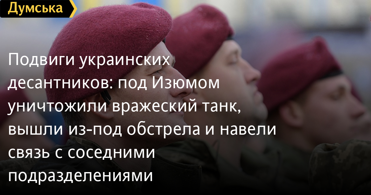 Подвиги украинских десантников: под Изюмом уничтожили вражеский танк, вышли из-под обстрела и навели связь с соседними подразделениямиКомандование десантно-штурмовых войск Вооруженных сил Украины публикует новые данные об отважных и героических действиях наших защитников на полях сражений. В этот раз ДШВ раскрыли подроности боев, которые ведет N-ская отдельная аэромобильная бригада в районе Изюма в Харьковской области. Так, заместитель командира разведывательного подразделения – инструктор по воздушно-десантной подготовке, умело командуя своим подразделением, вел бой с превосходящими силами врага, во время которого был подбит российский танк Т-72, пехота оккупанта понесла серьезные потери. Офицер успешно провел разведку местности, благодаря чему удалось остановить попытку прорыва противника. После боя умелые действия командира по эвакуации личного состава привели к тому, что все подразделение без потерь вышло с частично занятой врагом территории. Во время боя младший сержант Борис Т. лично уничтожил вражеский Т-72 и выполнил ряд важных задач. Водитель бронемашины Семен К. эвакуировал сослуживцев из-под вражеского огня, а младший сержант Вячеслав Т. в сложных боевых условиях наладил связь с соседними подразделениями. СМЕРТЬ РОССИЙСКИМ ОККУПАНТАМ! Заметили ошибку? Выделяйте слова с ошибкой и нажимайте control-enter |
