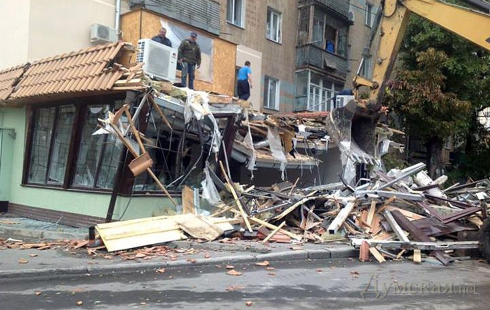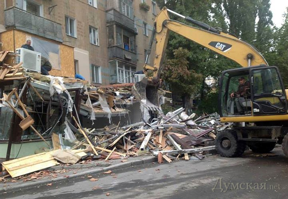 Мэр Одессы Алексей Костусев выложил в «Фейсбук» фотографии принудительного сноса незаконной пристройки заведения Coba's Grill Cafe, что на Канатной, 132, в десяти метрах от Приморской райадминистрация. Ресторан, в котором, кстати, обедают и заключают выгодные сделки многие сотрудники администрации, включая самого председателя Ивана Пастушка, действительно, слегка обнаглел. А началось все несколько лет назад, когда «Кобас» соорудил летнюю площадку, перегородившую тротуар. Со временем площадка обросла стенами и превратилась во вполне капитальное строение. По слухам, владелец кафе пытался узаконить свой нахалстрой через ГАСК. Странно только, что Костусев занялся этим объектом только сейчас. СМЕРТЬ РОСІЙСЬКИМ ОКУПАНТАМ! Помітили помилку? Виділяйте слова з помилкою та натискайте control-enter |