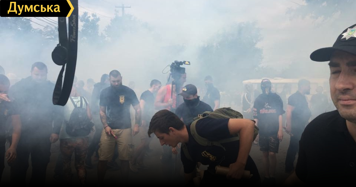 Несколько десятков активистов национального корпуса «Азов» устроили протестную акцию возле стройки. Им противостояли контрпротестующие, которые превосходили их по численности.