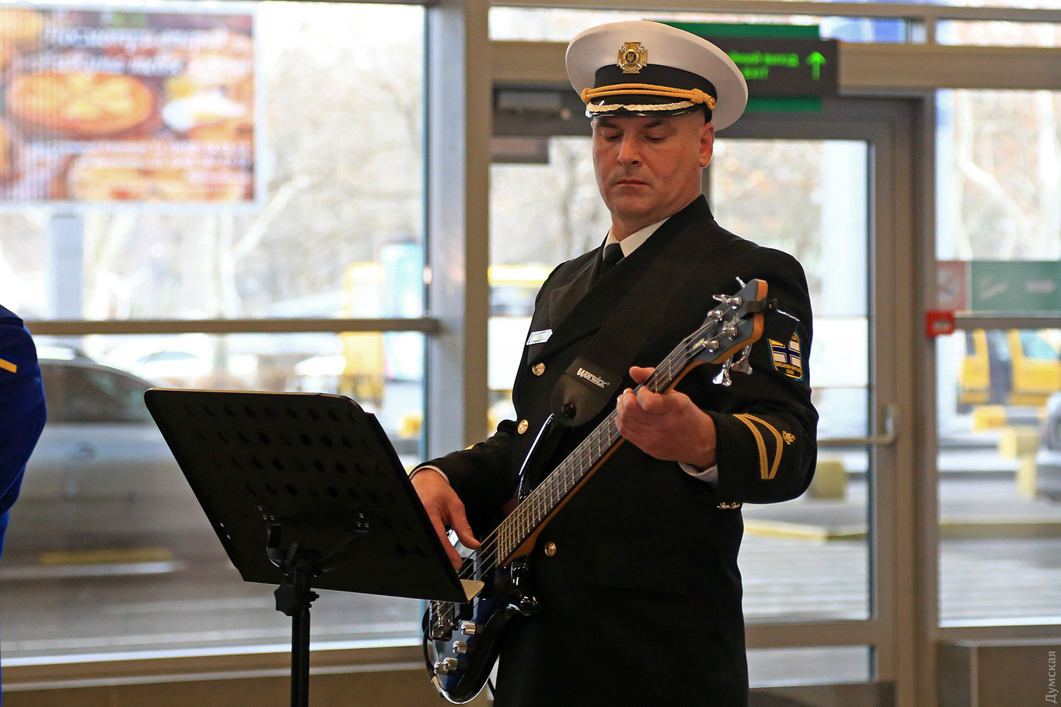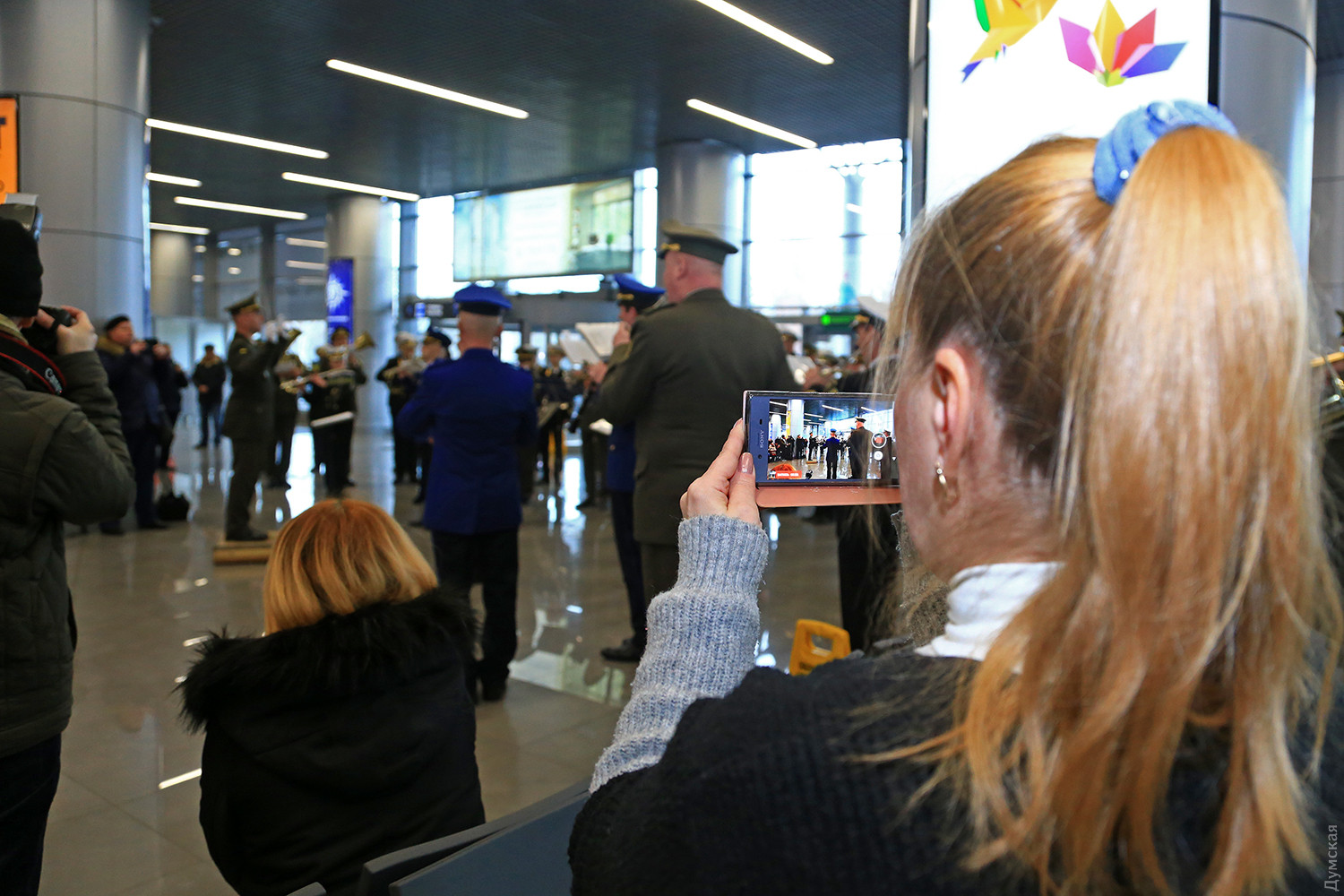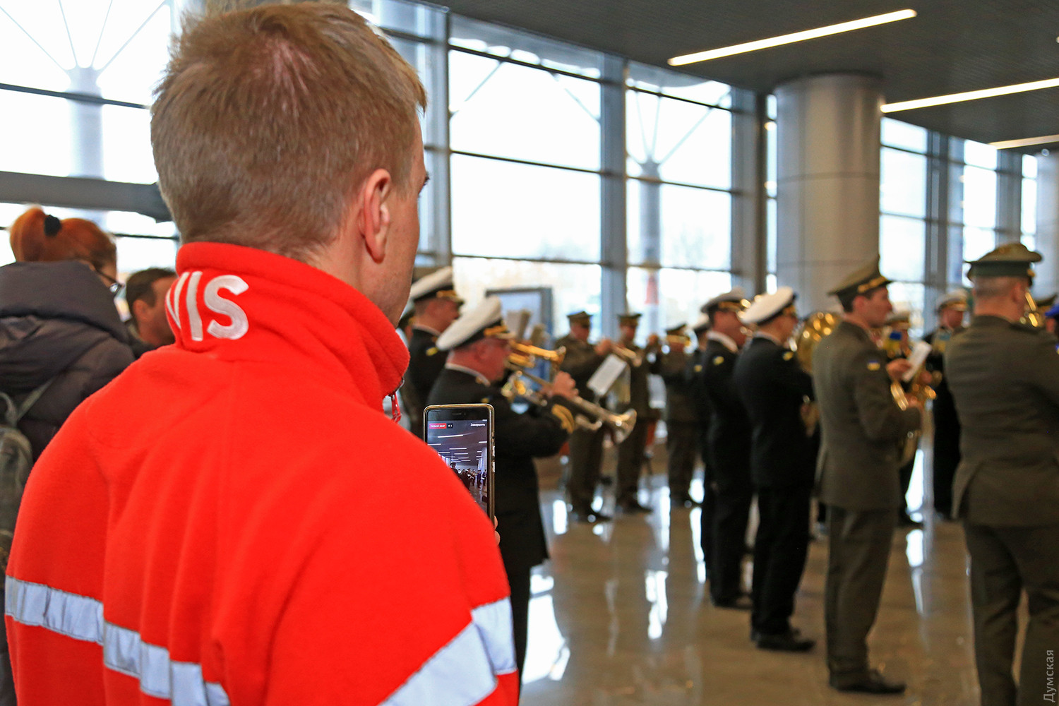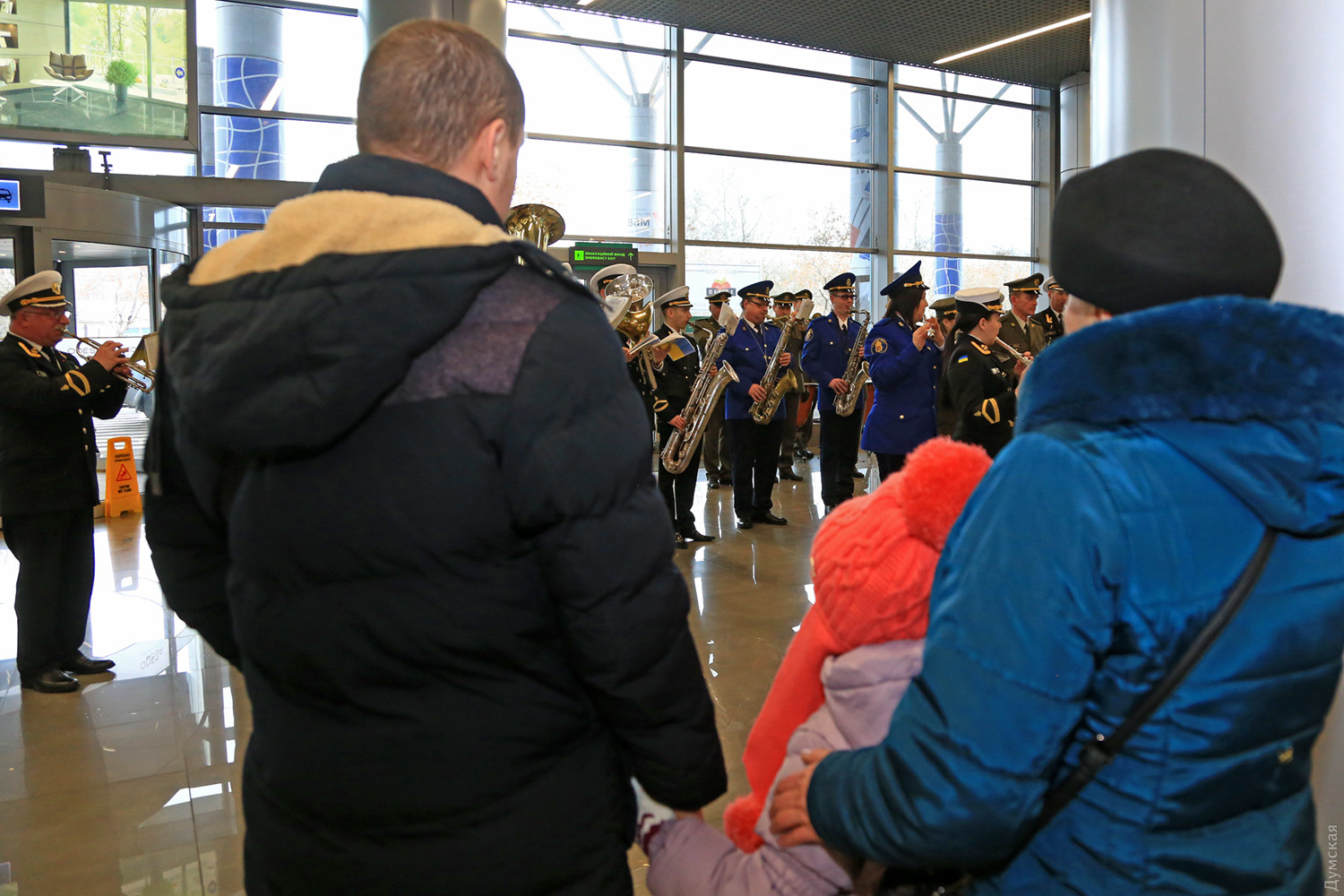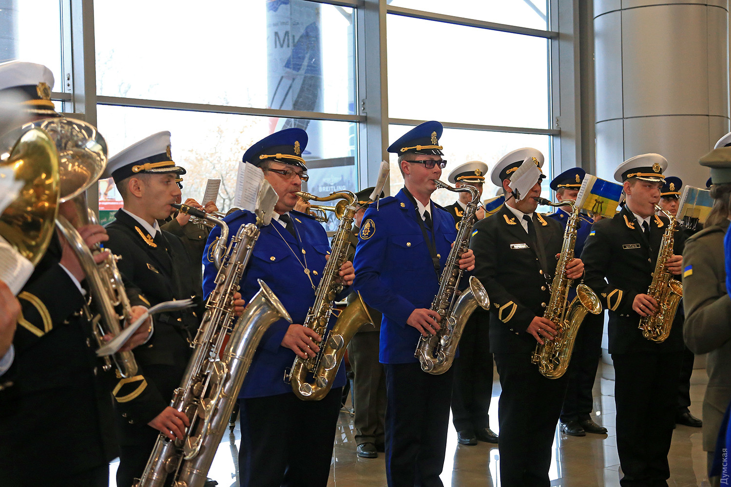 Сегодня днем в новом терминале Одесского международного аэропорта прошел небольшой концерт, посвященный памяти «киборгов» — военных и добровольцев, которые погибли при защите Донецкого аэропорта. Тройка одесских военных оркестров — ВМСУ, одесской Военной академии и оркестр в/ч 3012 Нацгвардии сыграли пять композиций в зале прилета. Около пятидесяти военных музыкантов в одном строю исполнили несколько композиций, в том числе фрагмент Симфонии №7 Бетховена, «Танец рыцарей» из балета Прокофьева «Ромео и Джульетта» и «Адажио» Альбинони. «Хотя мы много репетировали, но не так просто было сегодня стоять перед оркестром. В этих произведениях заложен большой смысл, и во время исполнения я ощущал духовную связь с защитниками Донецкого аэропорта», — отметил дирижер оркестра Нацгвардии майор Александр Федорчук. В зале прилета зрителей оказалось не очень много, но по окончании все они тепло приветствовали музыкантов. Отметим, героическая оборона аэропорта длилась 242 дня. Только по официальным данным при защите объекта погибло более двухсот украинских бойцов. Фото Сергея Смоленцева СМЕРТЬ РОСІЙСЬКИМ ОКУПАНТАМ! Помітили помилку? Виділяйте слова з помилкою та натискайте control-enter |