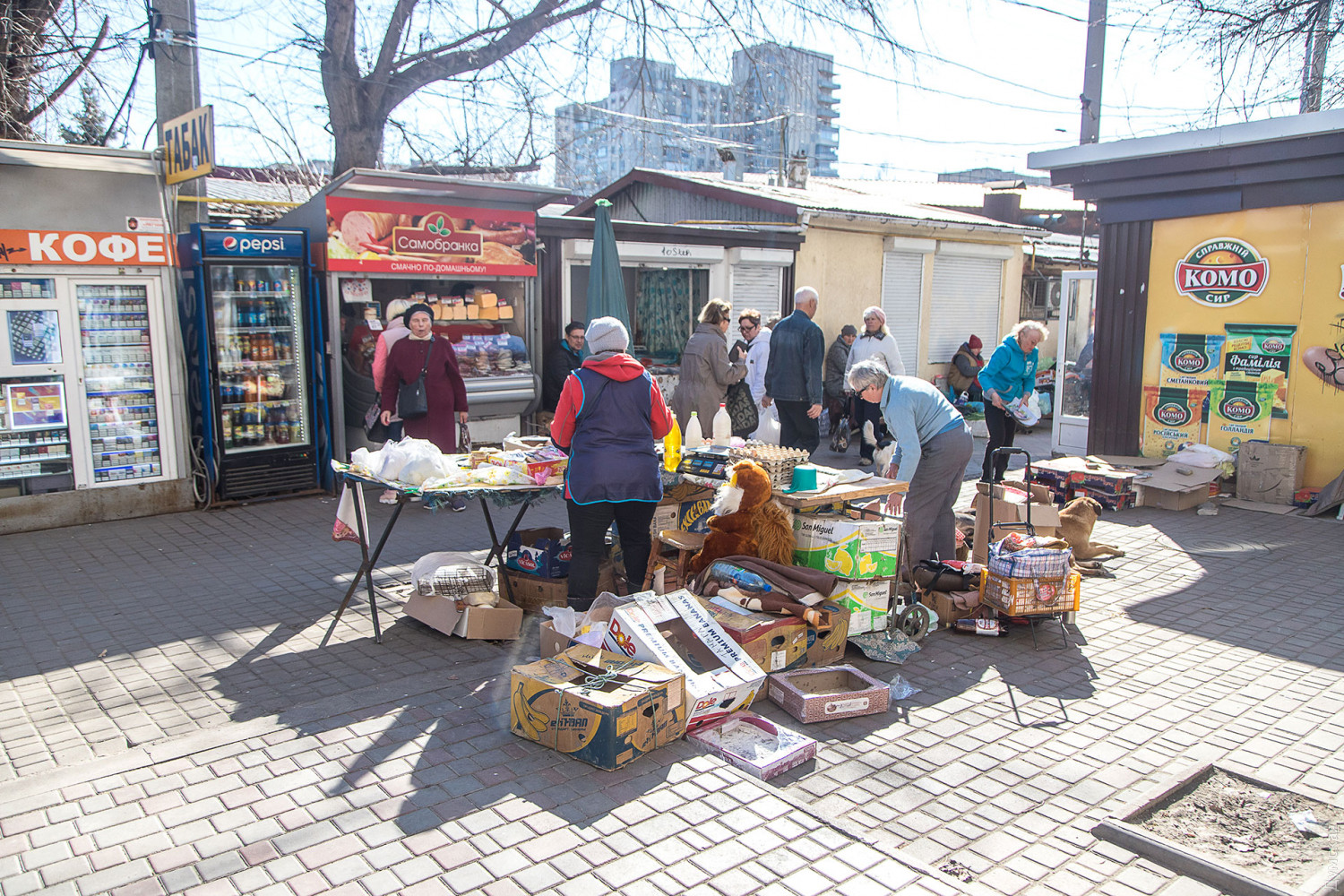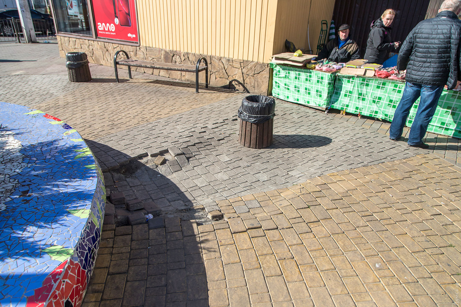 Мусор, провалившаяся плитка и работающий стихийный базар: площадь Независимости на карантине«Думская» прогулялась по площади Независимости (бывшей Деревянко), которая находится в самом сердце Таирова, и посмотрела, как здесь проходит карантин. Главная площадь уже давно превратилась в настоящий базар с прилавками и мафами. Здесь вам и шаурма, и с десяток различных аптек, и ломбарды всех мастей. Но во время карантина буйство красок площади несколько поутихло. Работают сейчас не все. Некогда открытые пространства широченных тротуаров утыканы будками настолько плотно, что места для благоустройства просто не остается. А за оставшимися небольшими отрезками следят спустя рукава. Вот проваливается плитка тротуара на небольшом пяточке, украшенном клумбой и неработающими часами, а подвесные клумбы на парапете не мешало бы починить и покрасить. Часть скамеек сломаны, на некоторые просто неприятно садиться. Все это «благоустройство» можно списать на карантин, но нет - такое уныние здесь было задолго до этого, а чиновники мэрии во главе с Трухановым не видят в этом никакой проблемы.