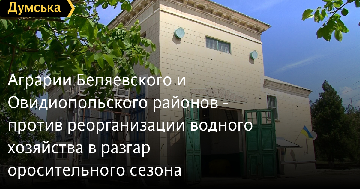 Аграрии Беляевского и Овидиопольского районов — против реорганизации водного хозяйства в разгар оросительного сезонаАграрии Беляевского и Овидиопольского района бьют тревогу. В разгар сезона чиновники затеяли реорганизацию Днестровского межрайонного управления водным хозяйством, которое подает воду для орошения полей. «Это одно из самых больших управлений по орошению в Одесской области. И одно из старейших. Оно начинает свою историю в 1957 году. Сейчас мы находимся в сердце нашего управления. Это главная насосная станция, которая подает воду для орошения двух районов – Беляевского и Овидиопольского. На 46800 гектар», — говорит замначальника управления Лариса Белинская. После завершения реформы, стартовавшей в 2017 году, Днестровское межрайонное управление должно стать эксплуатационным участком бассейнового управления водных ресурсов. Аграрии Беляевского района не согласны с таким решением, видят в реформе попытку ликвидации управления. «Сложная дилемма, областное управление хочет ликвидировать наше районное управление, обслуживающее два района. Аграрии собирались на расширенное заседание, на котором приняли решение о том, что этот вопрос сегодня неуместен. Не было проговорено все экономические выгоды по оптимизации, сокращению, ликвидации», — отметил глава союза овцеводов Беляевского и Овидиопольского районов Денис Ткаченко. «Есть уже указ о ликвидации управления в селе Маяки. Ликвидировать управление, которое сегодня выполняет государственную программу и обеспечивает продовольственную безопасность юг Украины, я считаю, что это является целенаправленным актом или преступными действиями. Почему? Потому что мы, аграрии Овидиопольского и Беляевского районов, уже имели разговор в марте с главой облводхоза. Уже тогда были первые предпосылки к ликвидации этого управления», — отметил глава правления общественного союза «Правовая защита сельхозпроизводителей» Леонид Земцев. Помимо всего прочего, ликвидация управления означает сокращение рабочих мест и уменьшение налогов, говорит глава Маякской ОТГ Виктор Дьяченко: «Где-то около 200 тысяч в месяц они дают нам по ДФЛ. На 12 они где-то 2,5 млн дали по ДФЛ. 320 специалистов заняты в этом управлении». Но больше всего аграриев пугает перспектива остаться без воды в разгар летней жары. «Люди живущие на селе должны видеть перспективу своего будущего, если не будет воды, это значит, нет перспективы для фермера, нет перспективы для остальных», — говорит фермер Виталий Билан. Днестровское водное управление обслуживает 63 пользователей. В этом году сезон орошения начался в марте и продлится до октября. Из-за засухи предприятие предоставило в два раза больше воды, чем в прошлом году. «В период с осень по зиму – пожалуйста, реорганизовывайте, переформируйте, соберите нас, аграриев, доказывайте целесообразность этих действий, чтобы мы тоже поддерживали вас. Но сейчас – зачем?» — говорит Леонид Земцев. Реформа водной сферы – часть программы евроинтеграции, которая с 2019 года закреплена в Конституции Украины. Схема разработана по немецкому и польскому образцам. В бассейновом управлении заверяют, что о ликвидации управления речь не идет, а его реорганизация необходима для более эффективного использования речной воды. «Согласно принятому закону, распределение водных управлений про