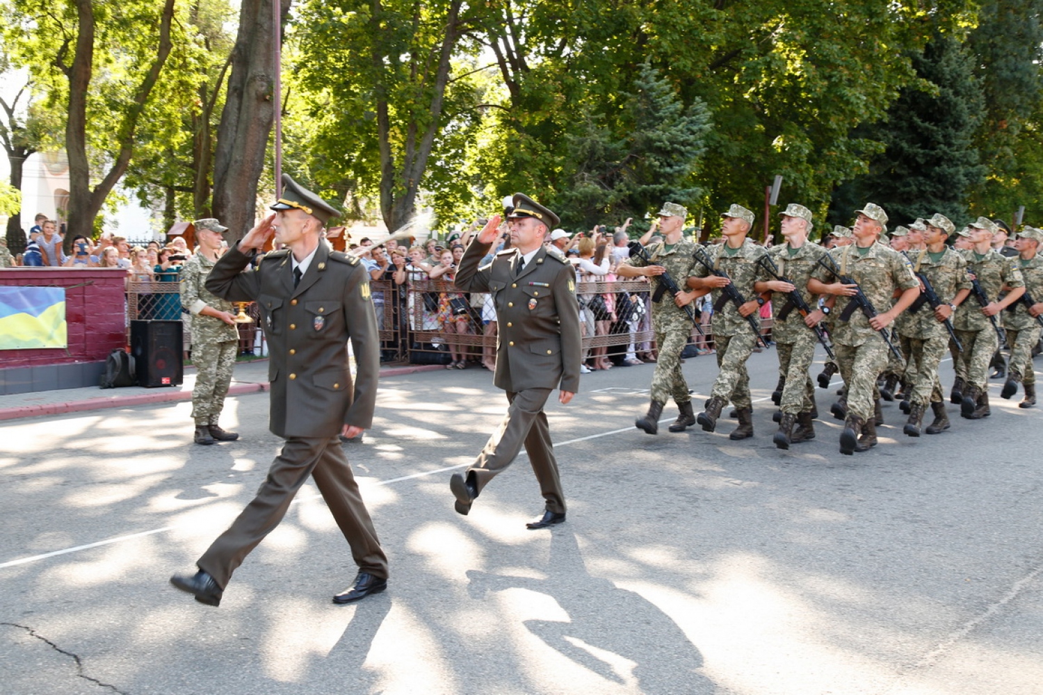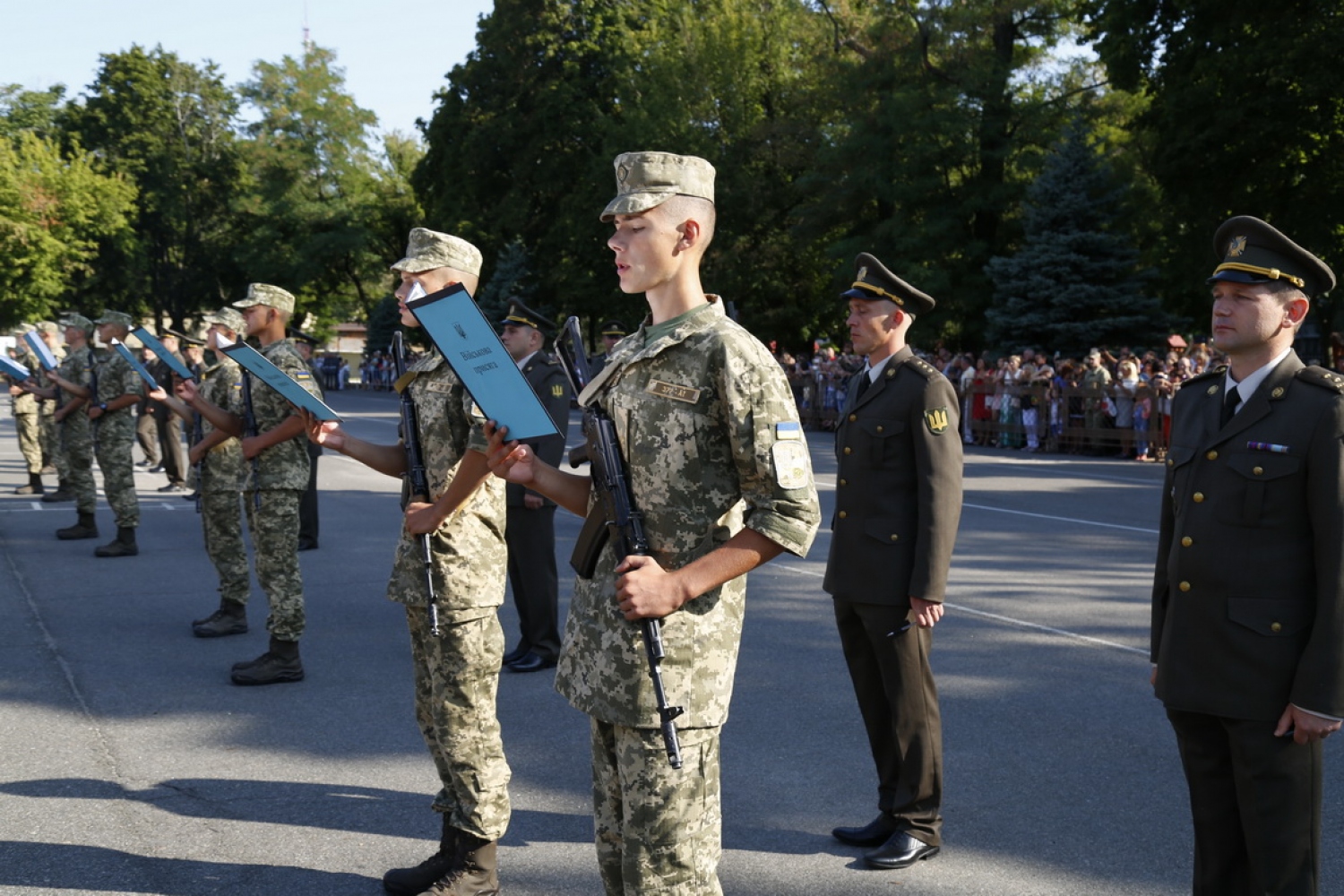 Около 500 первокурсников Военной академии Одессы торжественно приняли присягу на верность украинскому народу. Как сообщает пресс-служба Минобороны, среди нынешнего набора в военный вуз - более 260 военнослужащих-контрактников, почти половина из которых уже получила опыт в зоне АТО. Также ряды курсантов пополнили 98 юношей, окончивших лицеи с усиленной военно-физической подготовкой. Торжественный ритуал принятия присяги традиционно прошел на плацу военного вуза. Началось мероприятие с выноса боевого знамени академии и приветственного выступления начальника академии, генерал-майора Олега Гуляка. Он поздравил курсантов с знаковым событием в их жизни, а личный состав академии — с молодым пополнением курсантских рядов. После проведения ритуала первокурсников поздравили родные и близкие, а также представители воинских частей и учреждений Одесского гарнизона, органов власти и ветеранских организаций. СМЕРТЬ РОСІЙСЬКИМ ОКУПАНТАМ! Помітили помилку? Виділяйте слова з помилкою та натискайте control-enter |