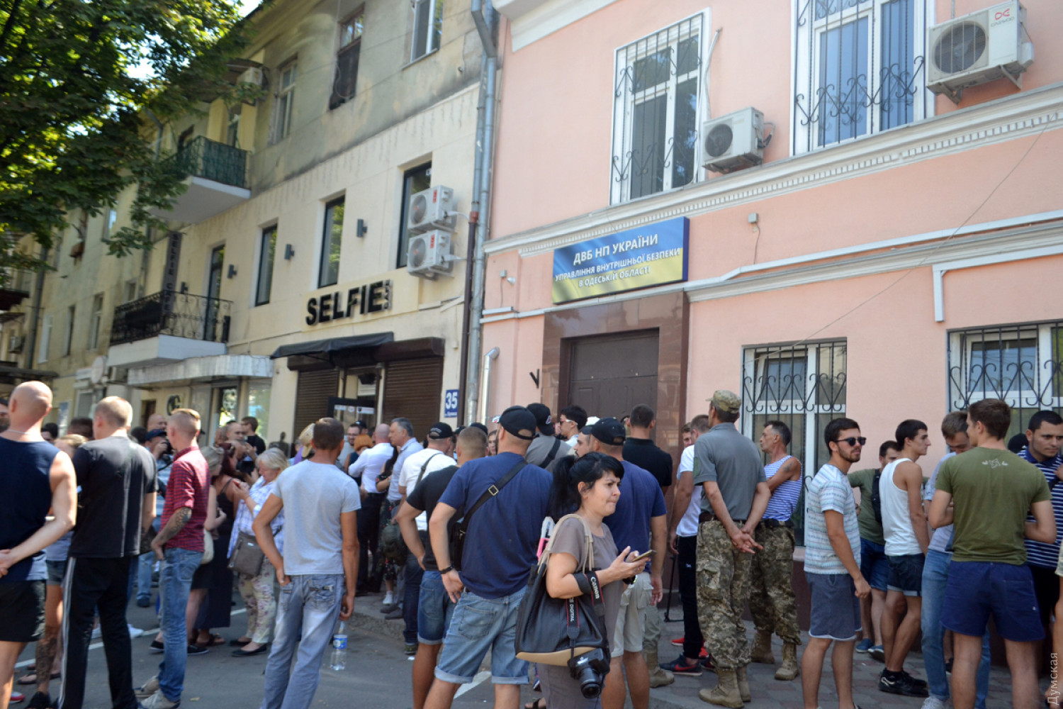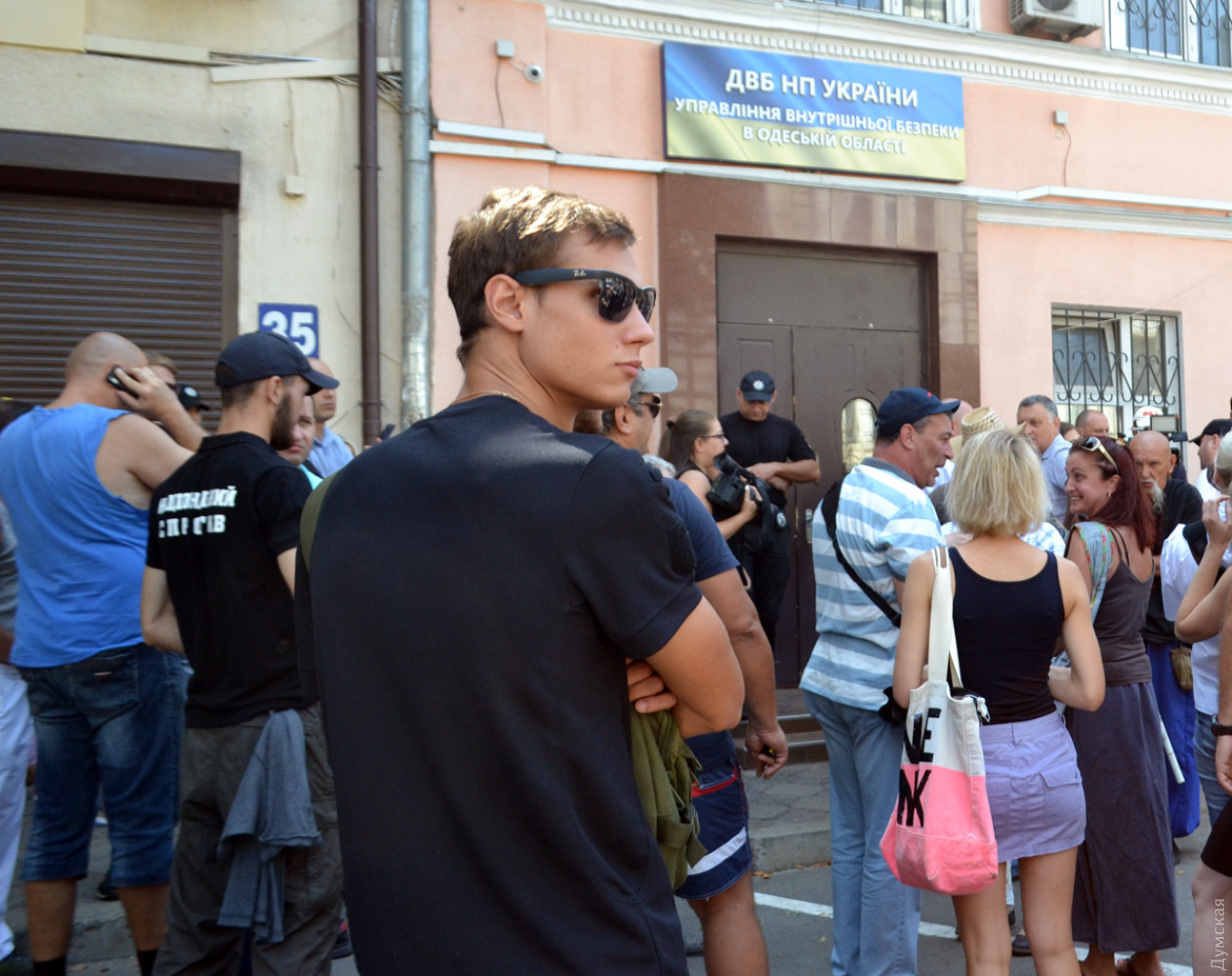 «Наш побратим Сябр фотографировал под департаментом, как начальник одесского управления ДВБ НП Украины Дмитрий Мартыненок, выходил из своего Porsche Cayenne (согласно декларации, Дмитрий Мартыненок передвигается на «Инфинити FX 35» 2006 года выпуска, — Ред.), и в этот момент его вместе с другом затащили внутрь сотрудники внутренней безопасности и там прессовали», — утверждает Гордиенко. К протестующим вышел прикомандированный к одесскому управлению сотрудник департамента ВБ Нацполиции Александр Устименко. Майор полиции заверил собравшихся, что сейчас по факту случившегося проводится служебное расследование. Марк Гордиенко и глава одесской ячейки «Автомайдана» Евгений Резвушкин о чем-то поговорили с киевским полицейским, после чего акция протеста свернулась. Отметим, что изначально общественники планировали закидать здание УВБ яйцами.