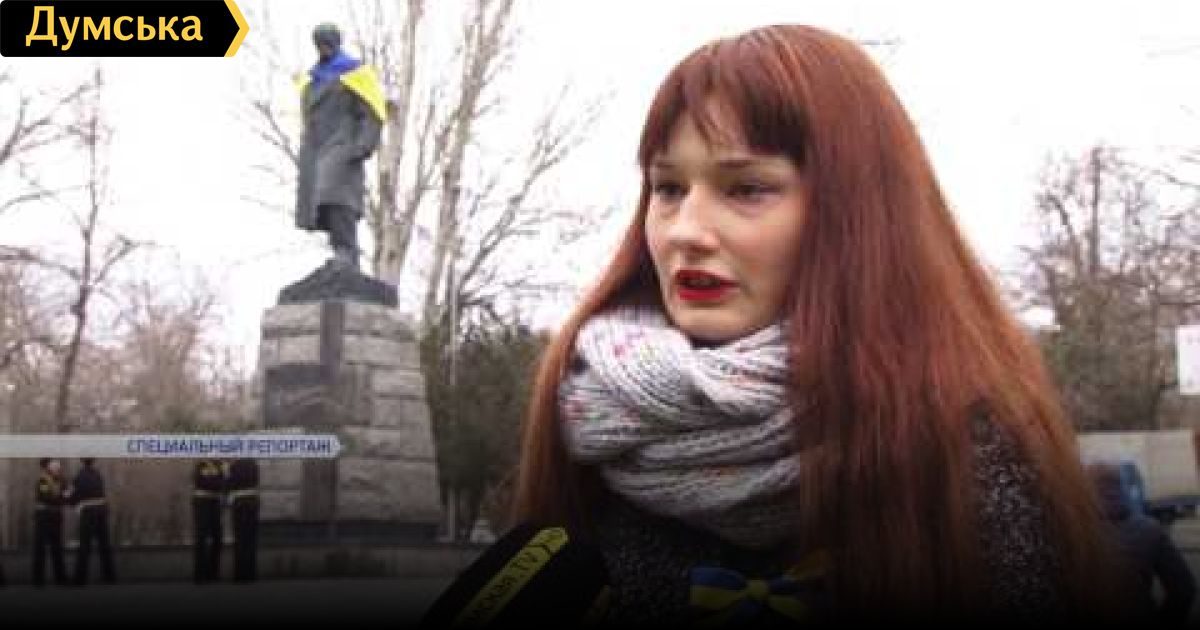 Тарас Шевченко — один из символов борьбы за Украину. В День Соборности акивисты молодежного крыла партии «Солилидарность» Блок Петра Порошенко водрузили на плечи украинского поэта национальный флаг.