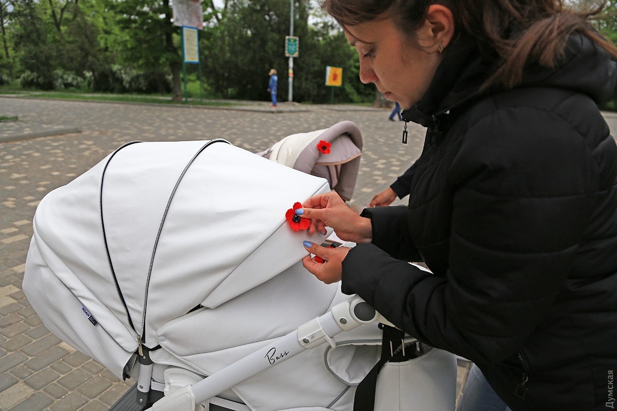 Активисты молодежного крыла партии «Солидарность» БПП собственноручно изготовили сотни значков в виде красных маков и раздают всем желающим их носить. «Сегодня молодежное крыло партии инициировало данное мероприятие. Мы хотим напомнить одесситам, сколько украинцев погибло на фронтах войны. Важно, чтобы мы знали свою историю и хранили память о тех, кто не вернулся», — отметила Валентина Шульц, руководитель секретариата Одесской территориальной организации партии «Солидарность» БПП. «Именно сегодня, в этот день, в самом конце войны погиб мой дед в Европе. Для меня это День памяти и примирения. Я сегодня гуляю уже со своим внуком и очень приятно надеть красный мак, как частичку крови погибших дедов. Этого нельзя забывать», — говорит одессит Владимир Паламарчук. «Сами маки — это просто символ. Намного важнее то внутреннее восприятие, которое должно быть в каждом человеке. Оно либо есть, либо его нет. Европа давно сделала для себя выбор и мы должны идти в ногу с ней», — считает молодая мама Марина.